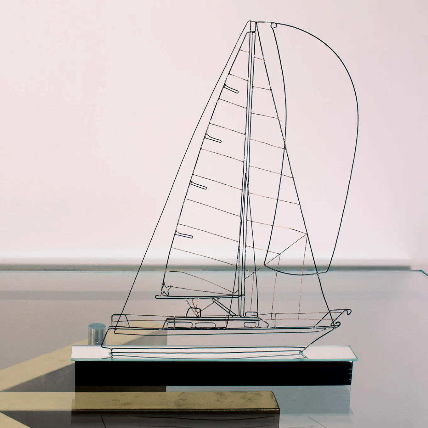 The perfect gift idea for a sea lover, this stupendous statuette depicts a Dufour sailing boat, handcrafted of black iron wire enriched with silver and bronze details. It rests on a polished black base with a mirror, that highlights its singular and lavish allure. The boat model is customizable, please consult the Concierge for details.