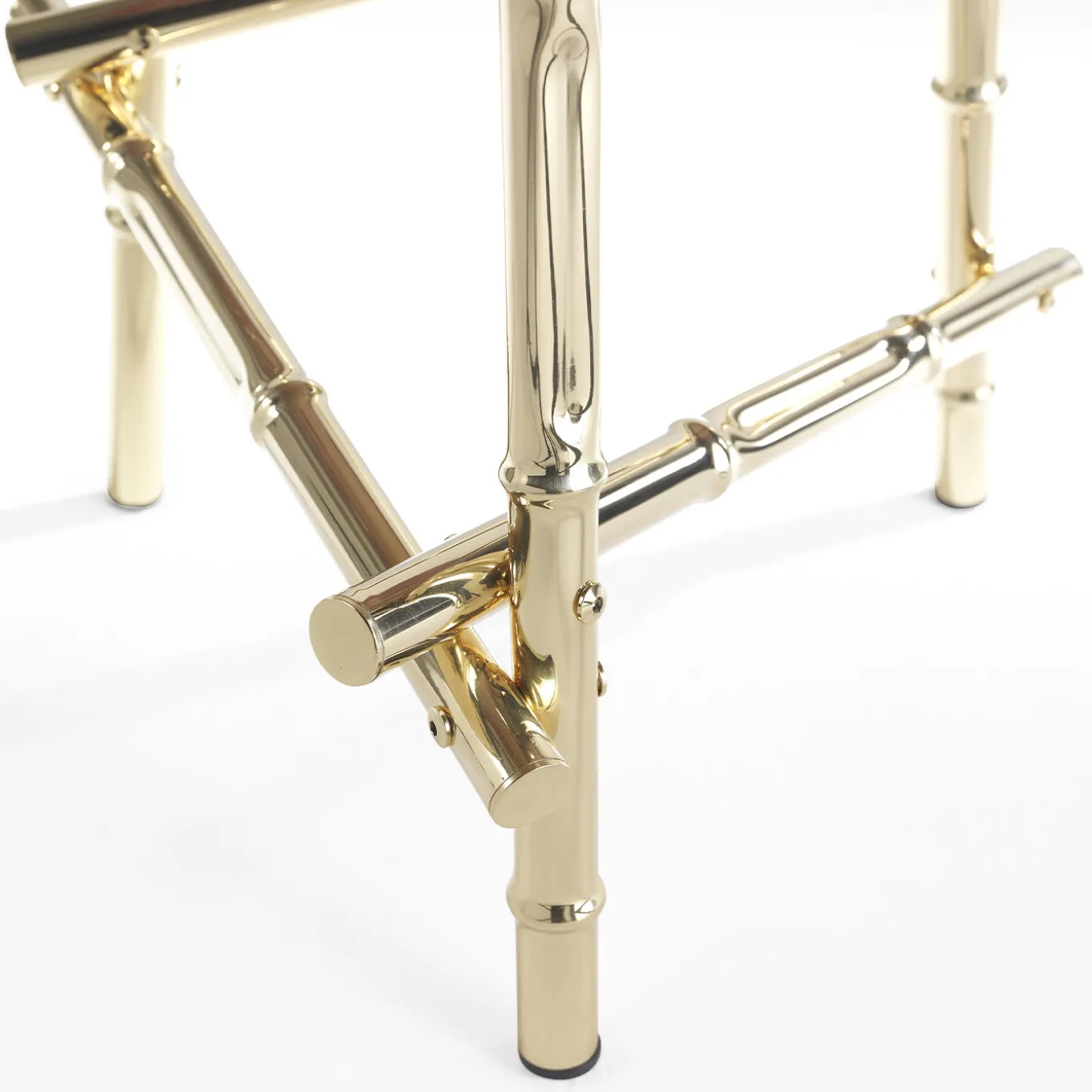 An elegant and evocative piece of furniture, the Samarcanda coffee tables feature marble tops whose warm tones and spotted motifs recall the charm of arid deserts and distant lands. A pleasant dynamic effect that contrasts with the base made up of a twist of bamboo canes, natural elements that turns into precious materials, able to give light to the environment. The Samarcanda coffee tables can be used individually or combined with the central table of the same line for the creation of the personalized composition. Structure in polished brass. Top in cat. A Eramosa (pass cut). The piece is available in other sizes, materials, and finishes, please ask the Concierge for options.