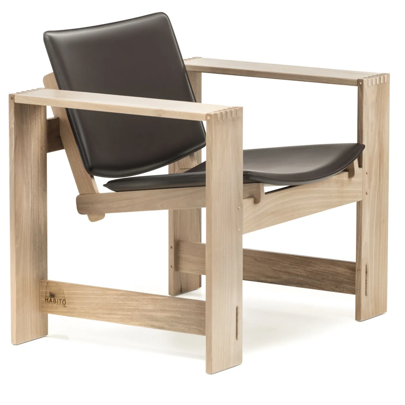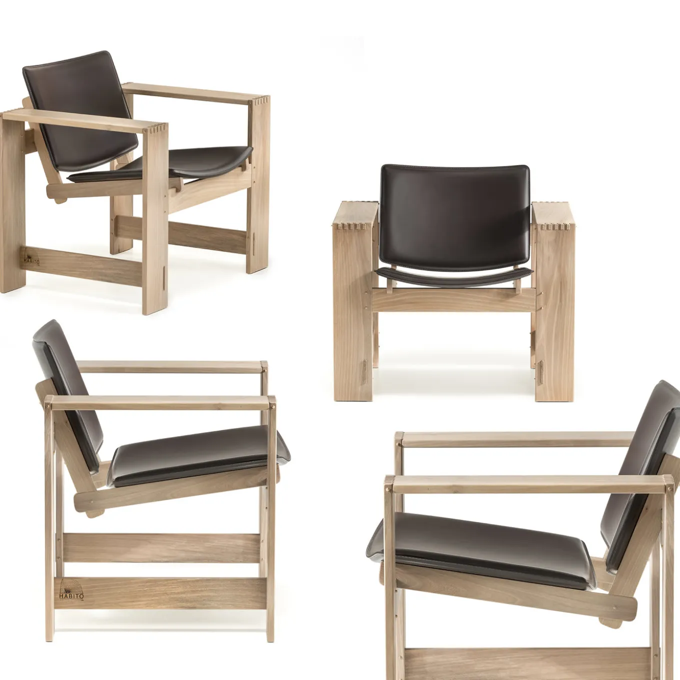 Imbuing a living area with a sophisticated rustic flair, this iconic Lounge chair is an invitation to lounge and relax with a good book and a hot drink. Boasting generous proportions and angular armrests that extend to the front, it is handcrafted of solid walnut with slot-in joints. The seat and backrest are upholstered with precious Nubuk leather.