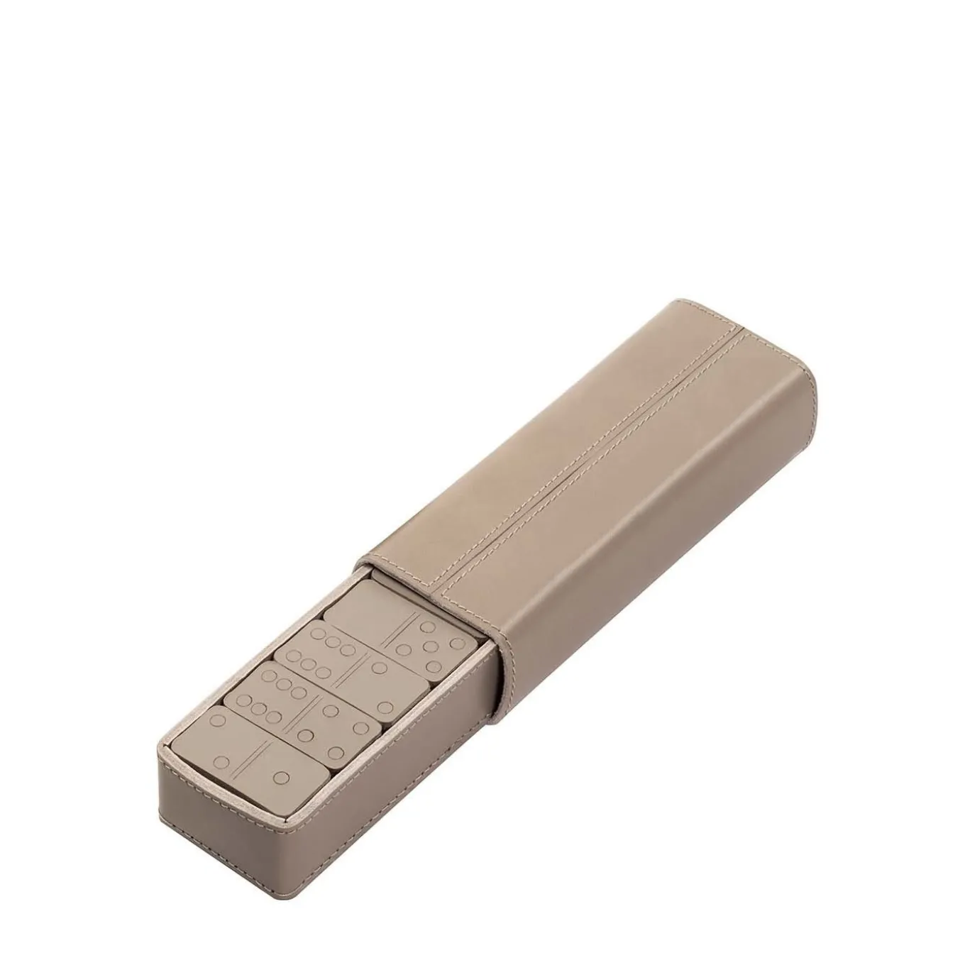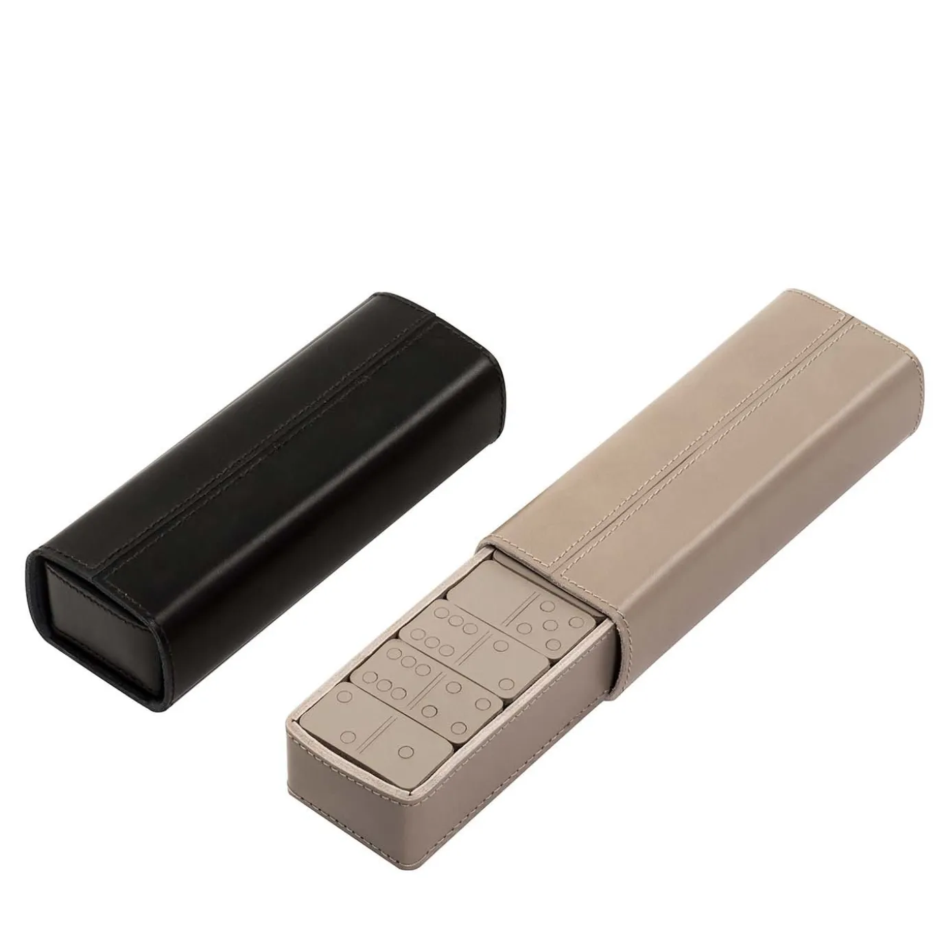 This elegant domino game and case is part of the Sanremo Collection, a series of pieces conceived for a game aficionado and intended to be not only functional but also strikingly eye-catching. Every element of this set – from the domino pieces to the two-part sliding storage case – is crafted of water-resistant saddle leather that is dyed with vegetable pigments. This set will make a splendid gift or a precious must-have on vacation get-aways with family and friends.