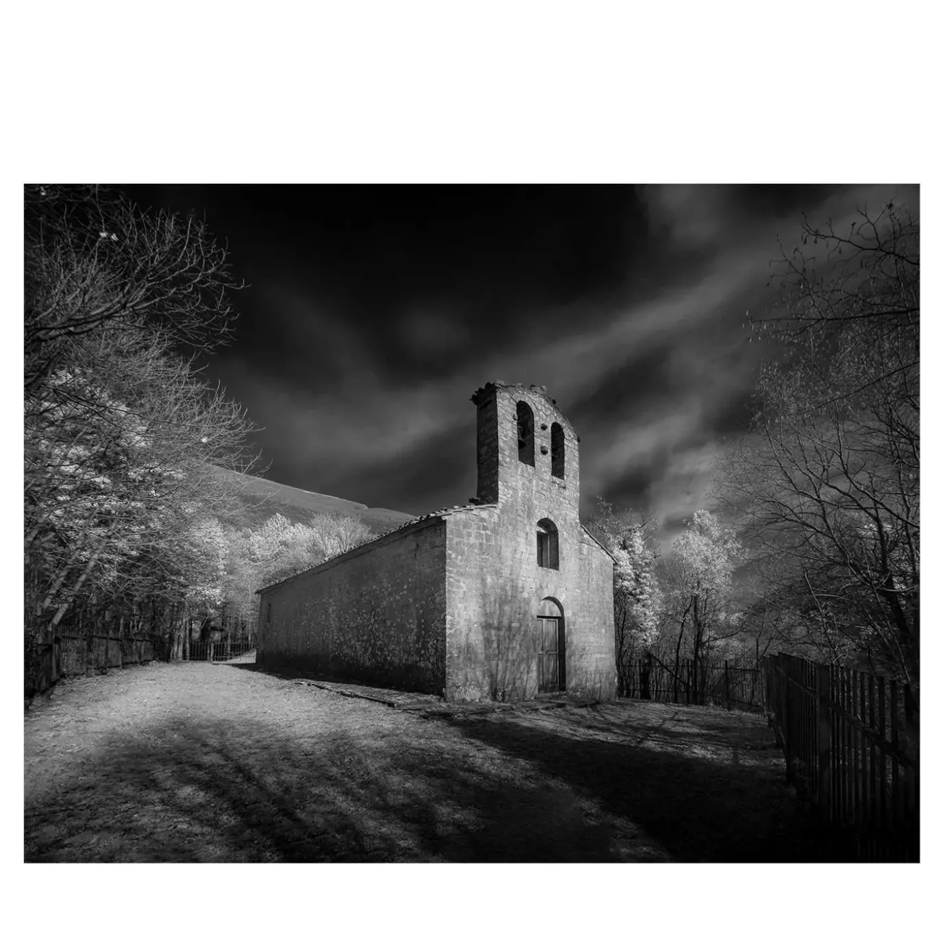 A foggy, bright light gently hits the simple facade of the Santa Cristina Church in the small hamlet of Sant’Anatolia di Narco (ITA), capturing the perfect moment for an impactful photograph of both symbolic and artistic and architectural value. Made by Raffaele Canepa with the Infrared Digital Photography (830mm) technique, it is available in different sizes, please contact the Concierge for further details.