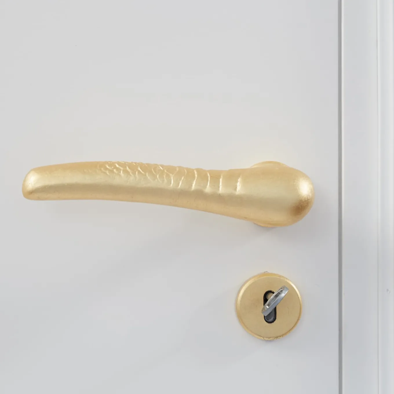 Part of the Scaglie series uniquely designed by Nicole Valenti, this door handle is a precious objet d’art finished with fine gold leaf. Its sleek and curved aluminum shape is enhanced with a series of irregular scales, highlighting the handcrafted nature that makes it a one-of-a-kind design of utmost sophistication.