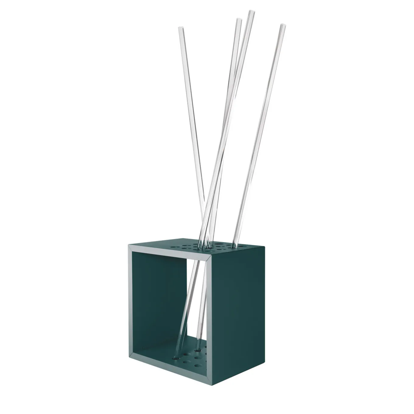 A striking design by Stefano Mazzucchetti, this coat hanger will make a statement in a contemporary entryway or hallway. Fashioned of petrol-green-lacquered MDF and four Plexiglas stems, it boasts a unique and playful shape reminiscent of a stick diffuser. This piece is available in other colors upon request, please contact the Concierge for details.