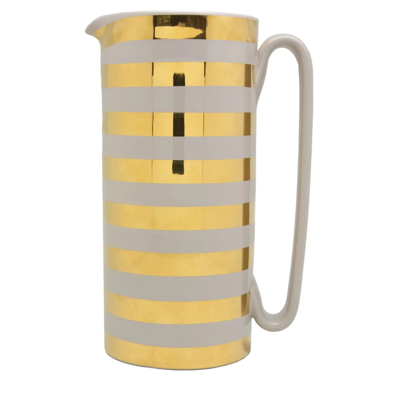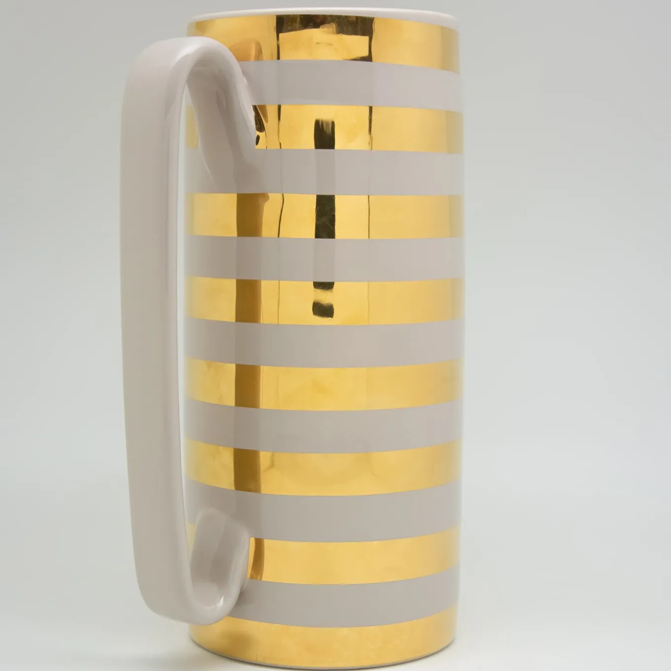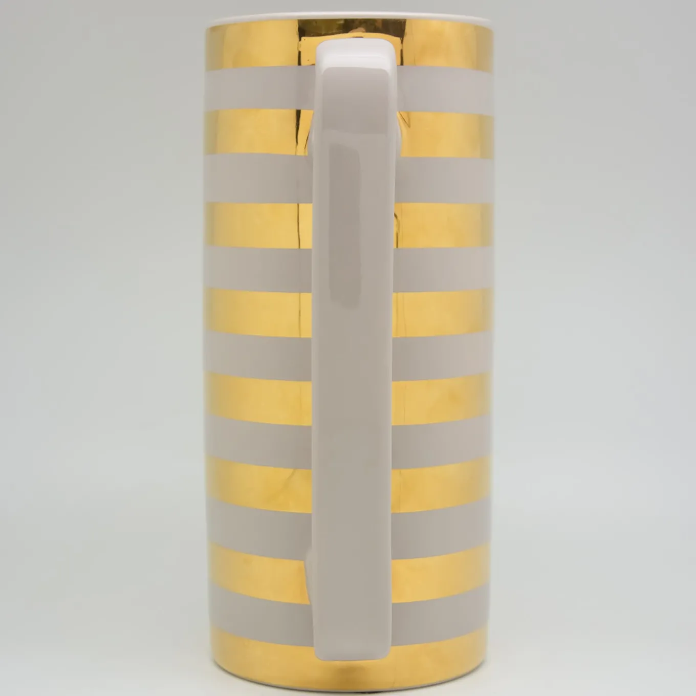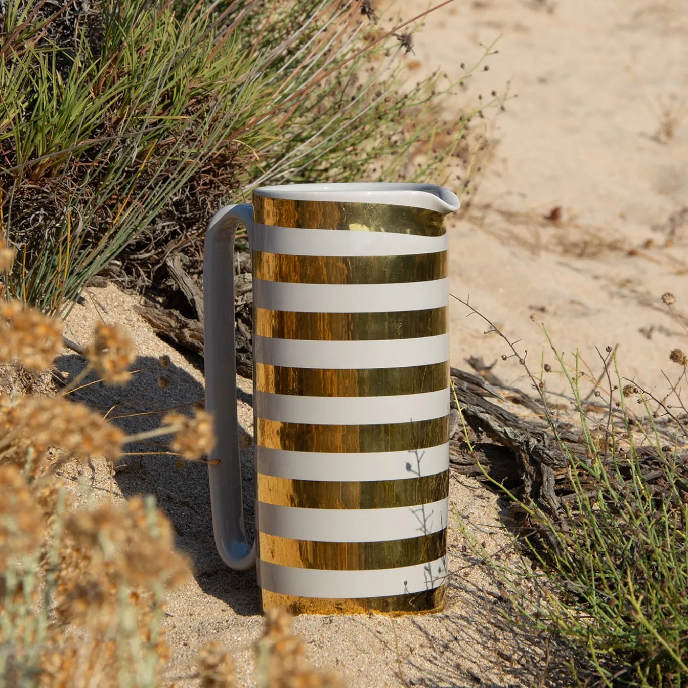 Bring a touch of Venetian aesthetic with the Terzo Fuoco ‘Serlio’ Gondoliere pitcher, the one and only ceramic carafe with a linear handle. Handthrown in white terracotta, the stunning Serlio Carafe is a beautiful example of fine Italian craftsmanship. Enhance any table with Tuttoattacato’s minimalistic design, emphasizing any classic or contemporary dinnerware with its elegant design and quality. Fired multiple times, the Copper stripes evoke the timeless pattern of the Gondolier’s shirt.