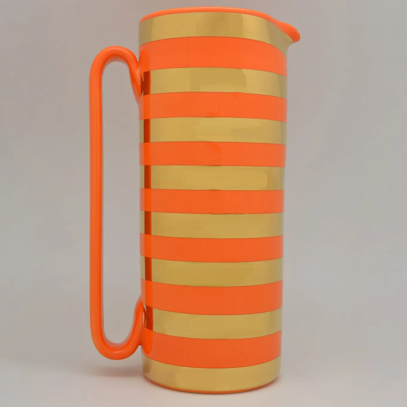 Gift yourself with the authentic 24 K Gold ‘Serlio’ pitcher, the one and only ceramic carafe with a linear handle. Handthrown in white terracotta, the stunning Serlio Carafe is a beautiful example of fine Italian craftsmanship. Enhance your table with Tuttoattacato’s minimalistic design, emphasizing any classic or contemporary dinnerware with its elegant design and quality. Fired multiple times, the 24 K Gold stripes are a result of the traditional ‘Terzo Fuoco’ technique.