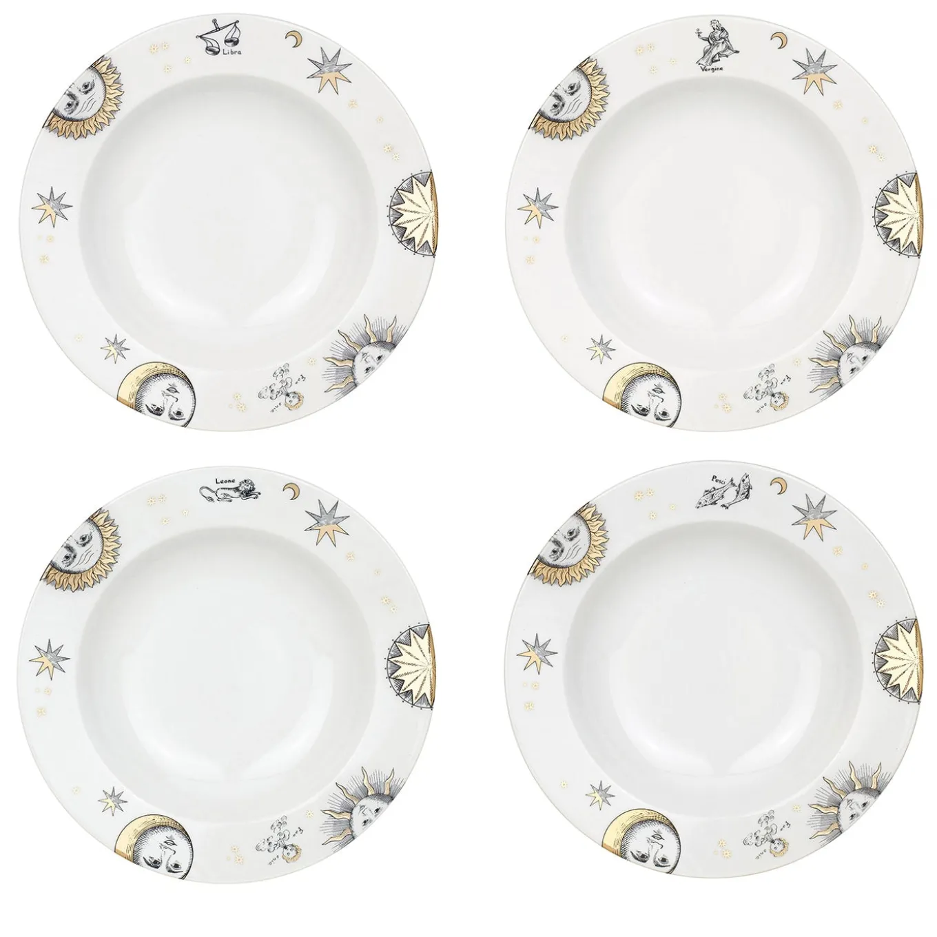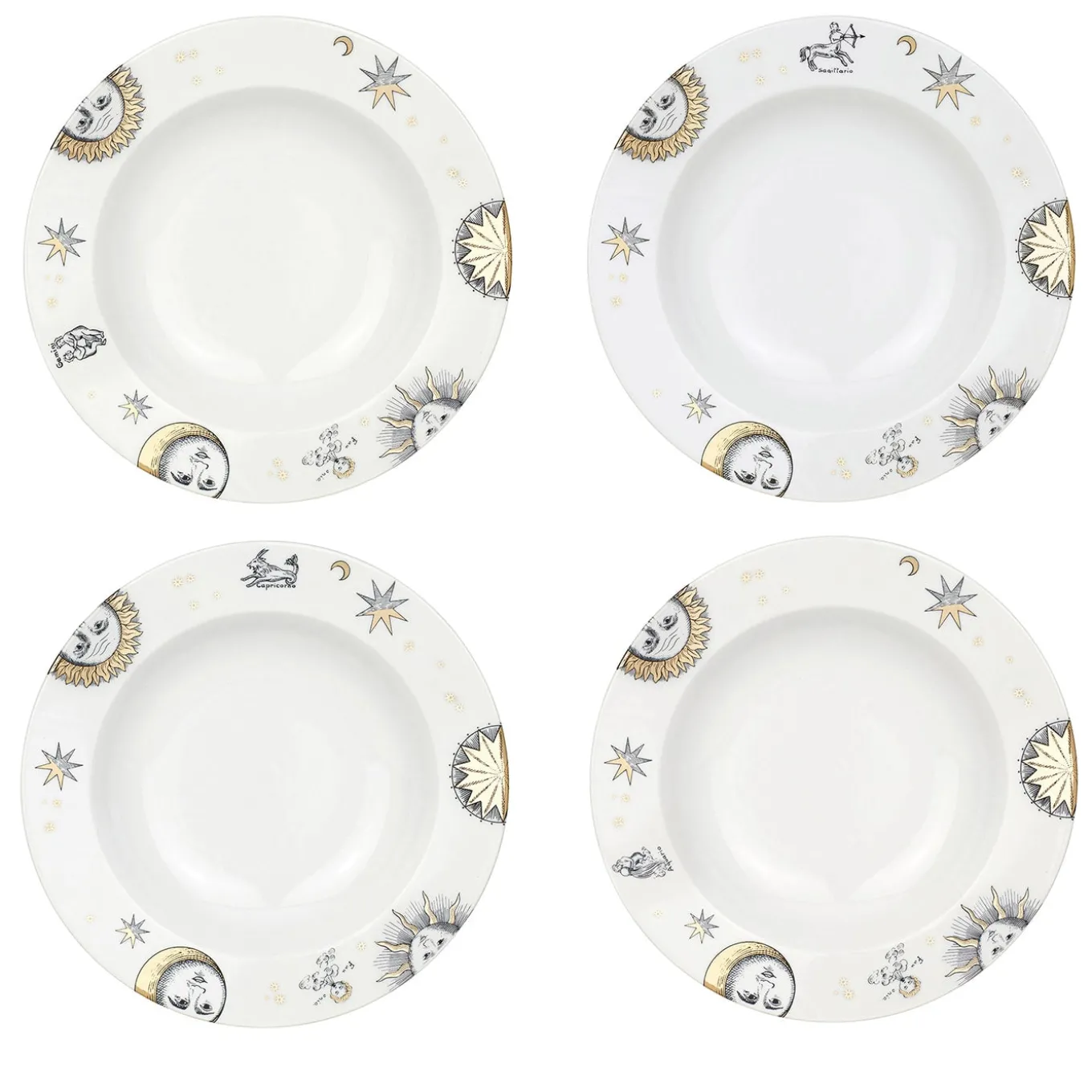 This set of hand-decorated porcelain plates is adorned with exquisite zodiac designs, making this ensemble a true collector’s item. One of the 12 signs of the zodiac is depicted on each plate. Any minor discrepancies are the result of craftsmanship and attest to the uniqueness of each product.