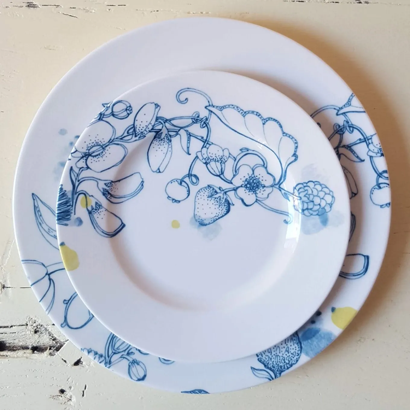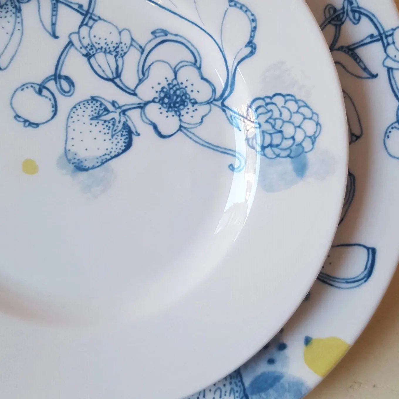 The “Blue Summer Collection” is a contemporary reinterpretation of the traditional white and blue Delft porcelains. Its motifs are an elegant balance of wild fruits and flowers into a fresh exquisite ornamental design. The smooth tones of blue with some highlight touches of yellow gave a contemporary twist to all the designs. Each design varies slightly due to the manual techniques used in their manufacturing. Oven and dishwasher are safe.