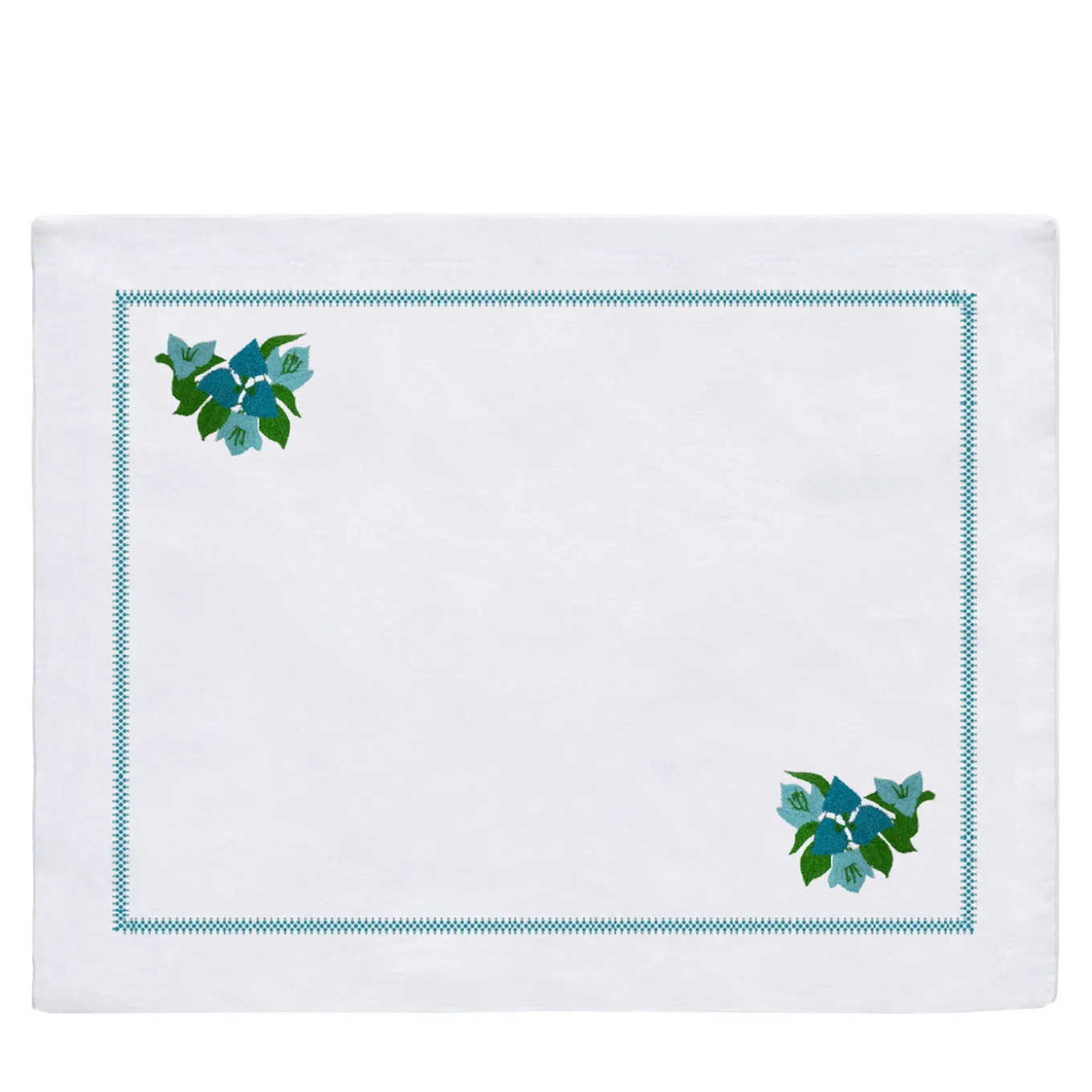 Set of 2 Bouganville White & Light Blue Linen Placemats