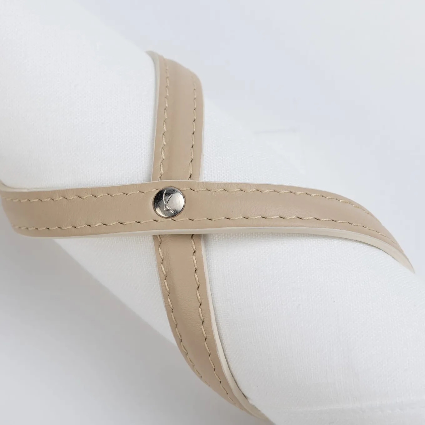 A simple design that will add a refined touch to any table, this napkin ring is entirely handmade of Foglizzo aniline leather. Crossed to form the shape of the “infinite” sign and fastened with a metal stud in the center, this delicate ring will stand out around napkins in natural colors, providing a striking visual contrast and a classic accent to both formal and informal settings. Please, ask the Concierge service for further information.