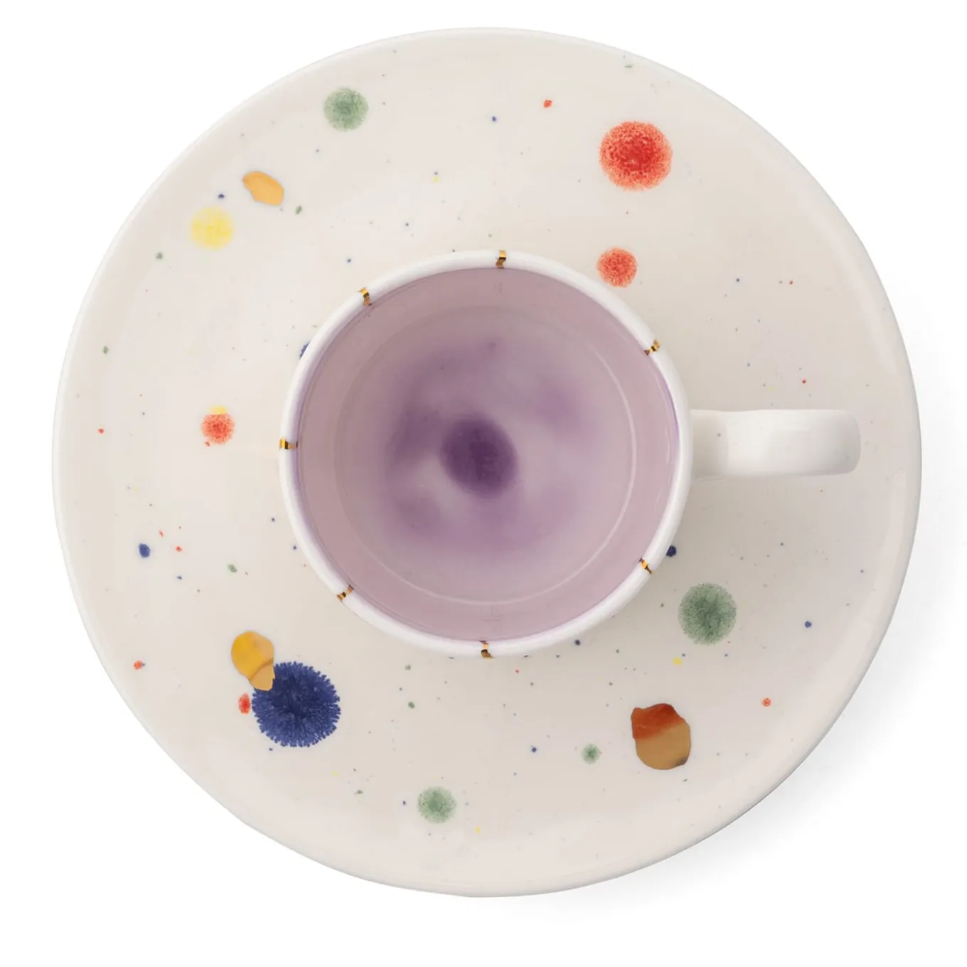 The Set of 2 Islamorada Straight Coffee Cups & Saucers from the Florida collection, launched in 2023, exudes luxury and cheerfulness. Inspired by the vibrant spirit of Florida, these pieces feature a soft Islamorada lavender that reflects the serene beauty of its sunsets. Each cup and saucer is adorned with playful multicolor dots, adding a whimsical touch to your coffee experience. The elegant design includes a delicate golden net that wraps around the cups, enhancing their sophistication.