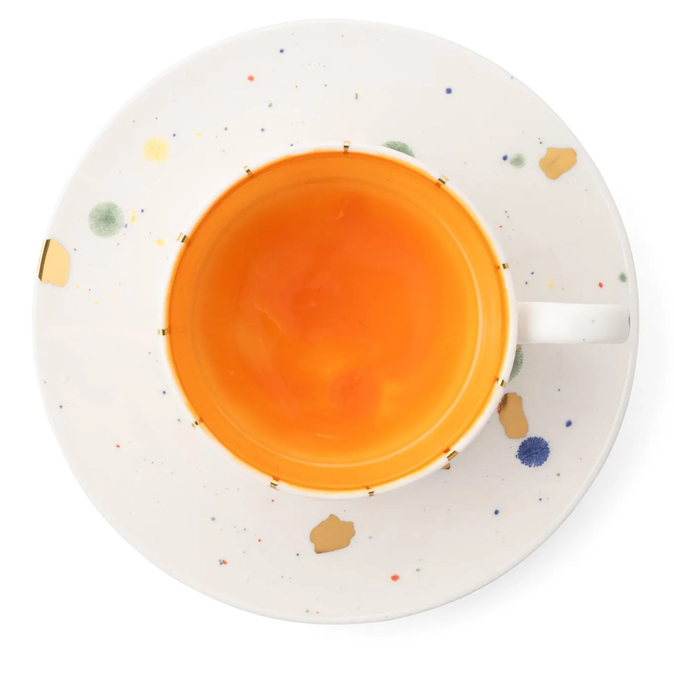 The Miami Teacup and saucer from the Florida collection, launched in 2023, embodies luxury and cheer. Inspired by the vibrant spirit of Florida, this piece features a bright Miami orange that evokes the lively atmosphere of its famous beaches and sunsets. The design showcases playful multicolor dots and a golden net, adding a whimsical touch.