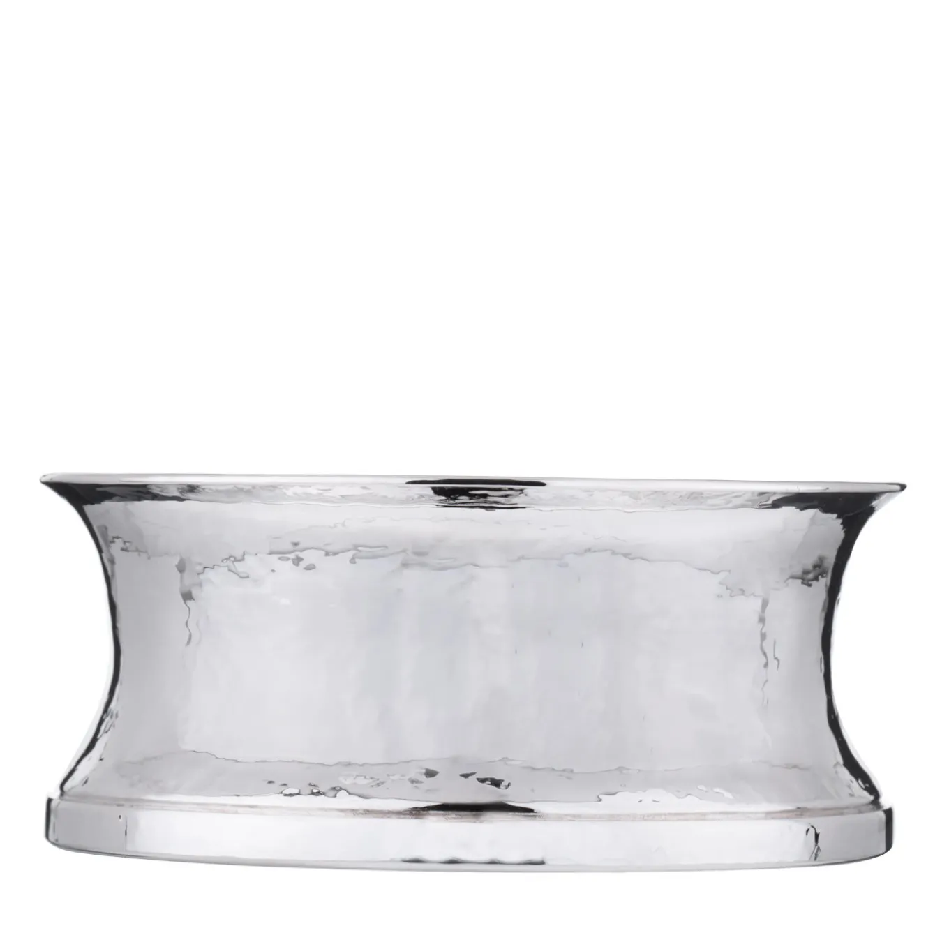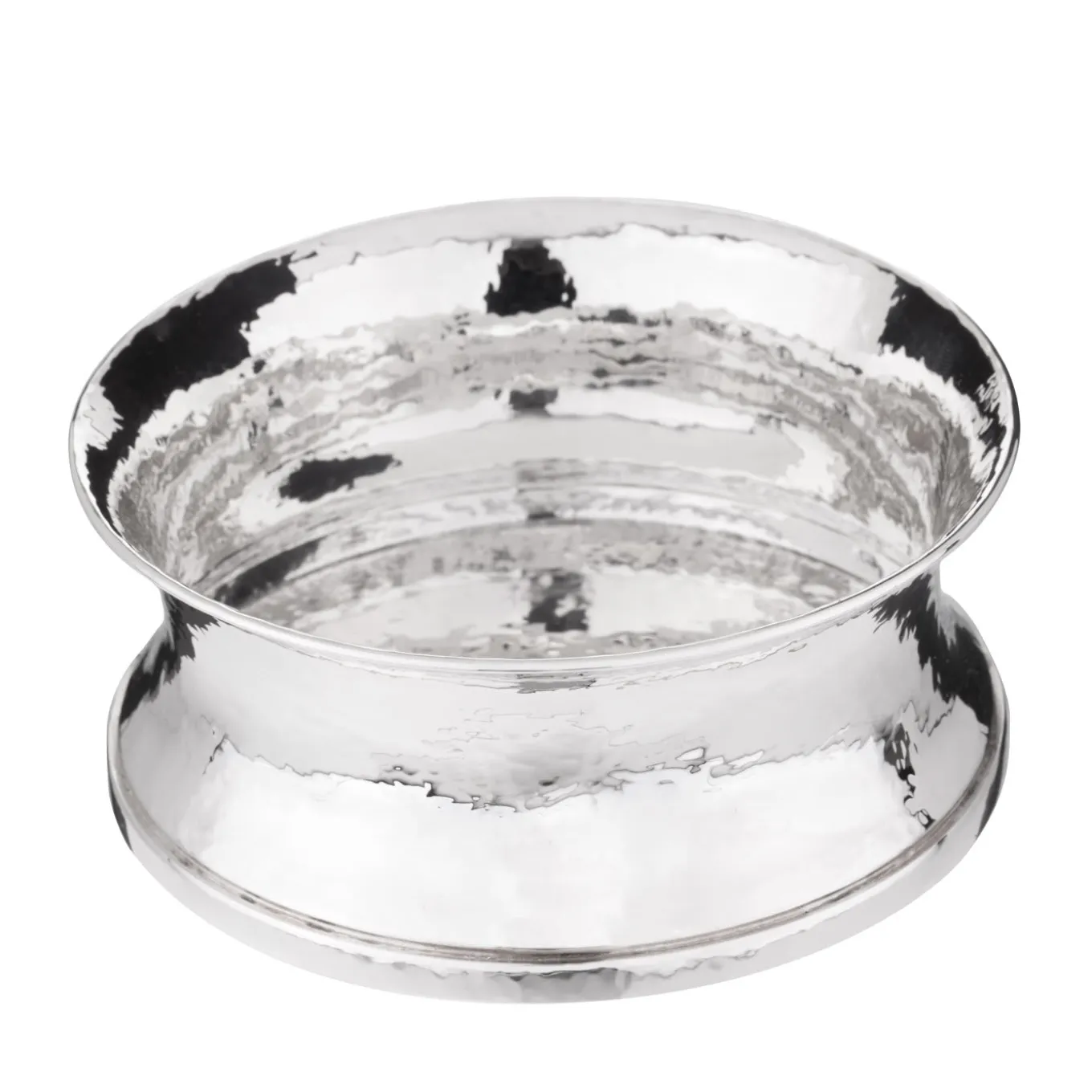 A shimmering set of 2 sterling silver bottle coasters consummately handcrafted by the Florentine silversmith atelier Pampaloni. The artisans were inspired by Trojan silverware for these bottle coasters that, like the other pieces of the Troiana Collection, are characterized by a flawless hand-hammered surface.