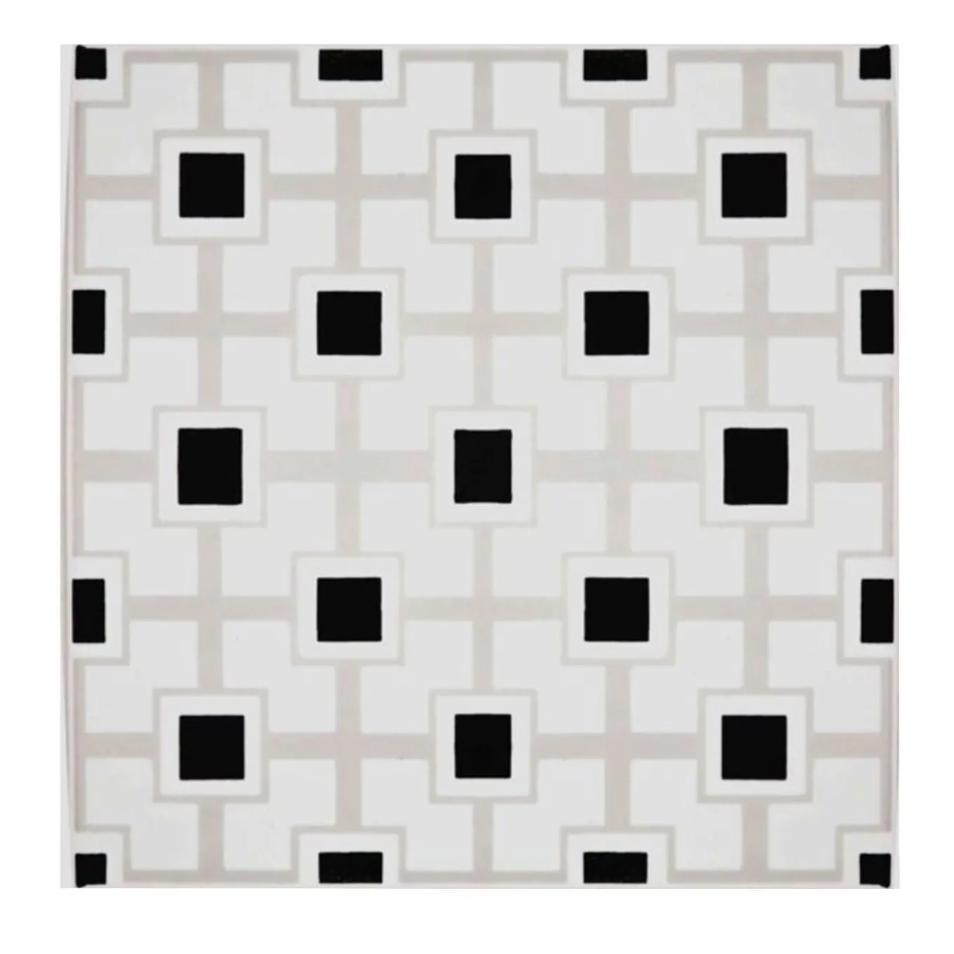 12 geometric decorations, screen-printed by hand on satin enamel, coordinated with 12 trendy colors: a multiplicity of combinations to follow current trends or create your own. The decorations are produced in the 20×20 format, while the colors are available in all formats. Customizable colors. Indoor finish on ceramic support is also available on semi-gloss Vietri White and Cement White also on porcelain gres, outdoor rough finish.