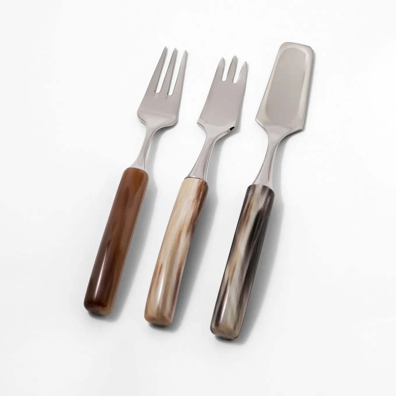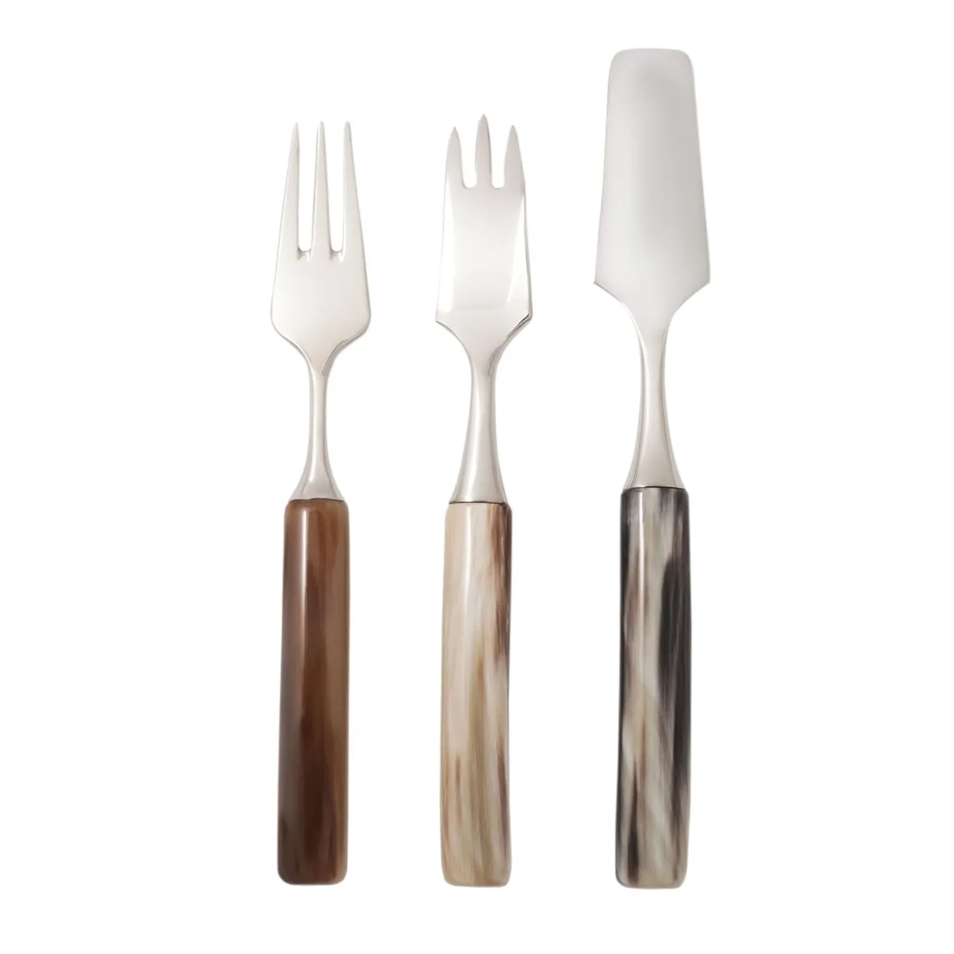 Make a lasting impression with this horn-handled cutlery set. Crafted by master artisans to guarantee exceptional performance and style, the set is forged using 18/10 stainless steel and features a sublime veined blonde horn that delicately counterbalances the sleek metal accents. The set includes a jam spoon, a cocktail fork, and a dessert fork, making it a superb wedding or housewarming gift. Delivered in a handmade box with a padded, satin-lined interior. Part of the Classic Collection.