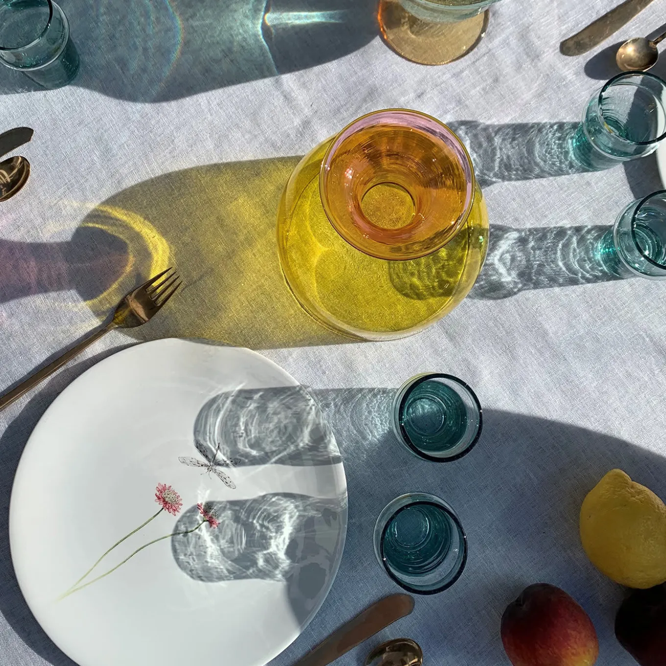 If BLOOM were a poem, it would be a haiku: almost everything is a blank page, with the exception of a few meaning-laden syllables printed. Emptiness reigns here as well, enhancing evanescent flowers with no roots floating in the air, each in conversation with a butterfly, a dragonfly, or a pair of bees. A dreamy and romantic mood, light and suspended. At the same time, tenacious and powerful.