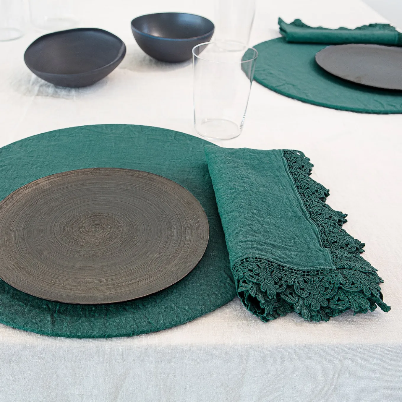 Add a fresh twist to your table with this set of 4 natural linen round placemats, featuring removable covers. Paired with included wooden supports, these placemats offer a stylish and versatile way to play with colors and textures. Perfect for elevating both casual and formal dining settings with a unique and elegant touch. Available in a wide range of colors, please ask the concierge for details.