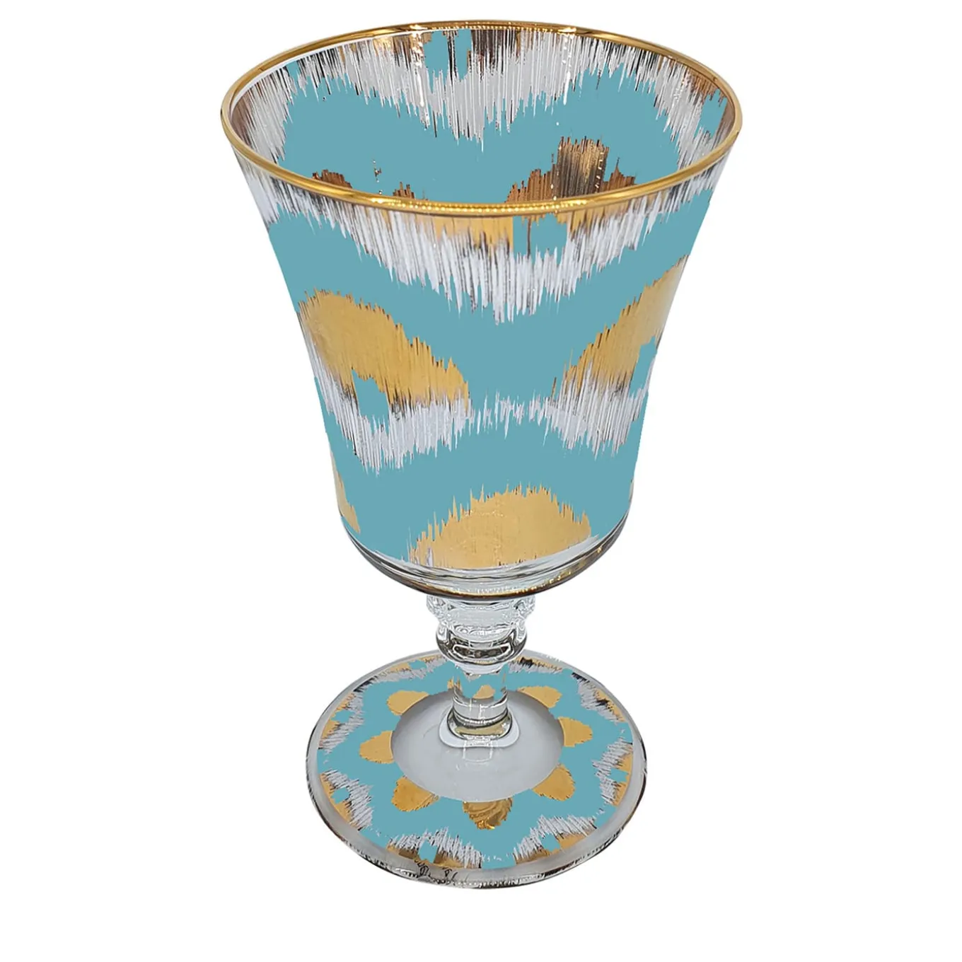 Be the first to review “Set of 4 Ikat Gold & Light Blue Wine Glasses” Cancel reply