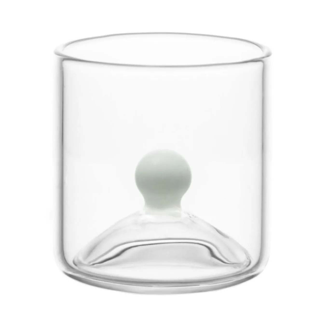 Set of 2 glasses designed for spirits and small-format cocktails, featuring an internal dome topped with contrasting black and white spheres. Inspired by festive shot rituals from various cultures, these glasses offer a whimsical touch to the tasting experience while encouraging shared enjoyment. Crafted from high-quality borosilicate glass, they combine durability with distinctive style. Suitable for enhancing any cocktail or spirits presentation.
