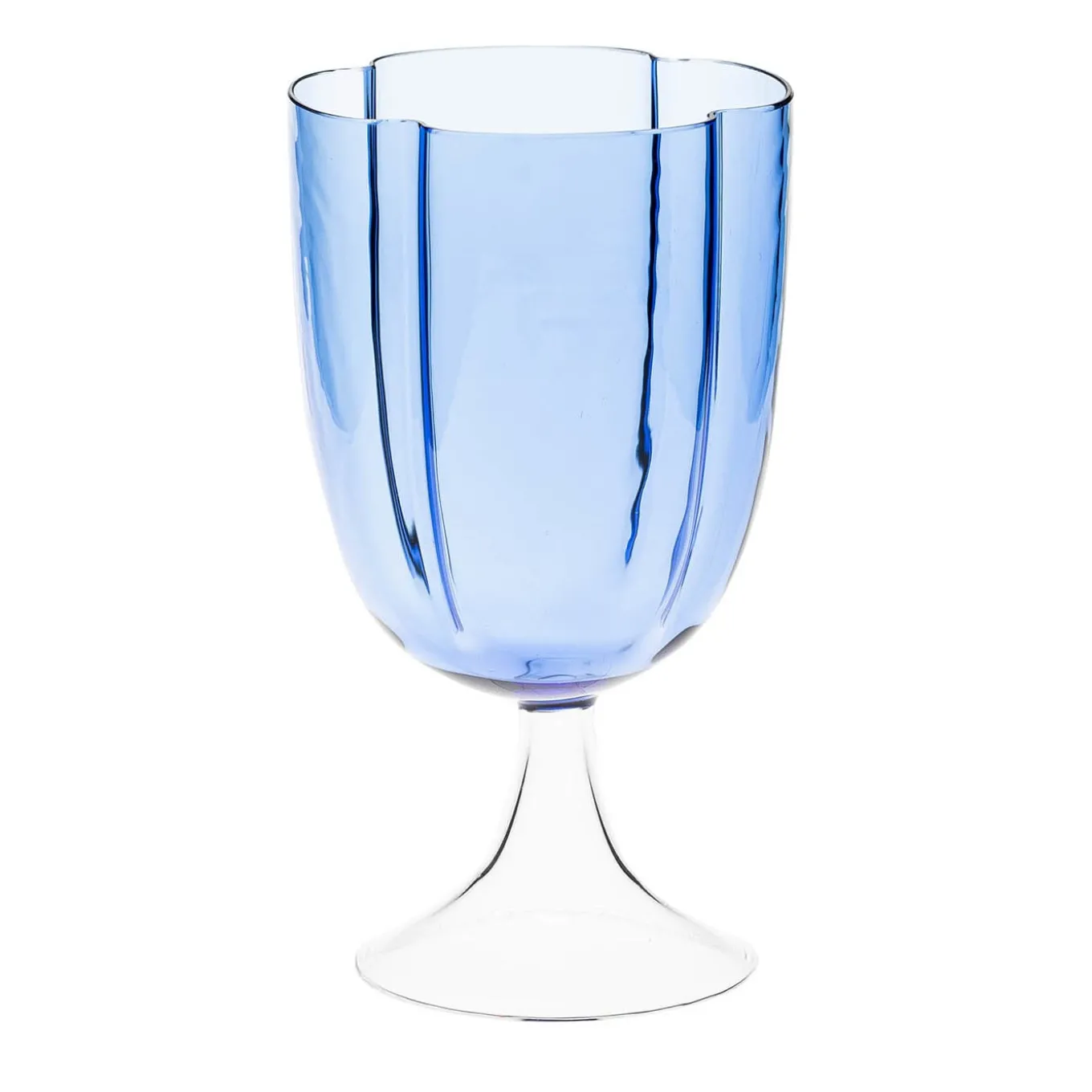 Set of 4 transparent wine glasses with a flower shape and stem, the glass opens like a flower in 4 petals. The glasses are handcrafted in Venice. They’re very light in weight, nuance and glass quality, but very resistant. It’s possible to wash them in the dishwasher. Also available in other finishes, please contact the Concierge for further options.