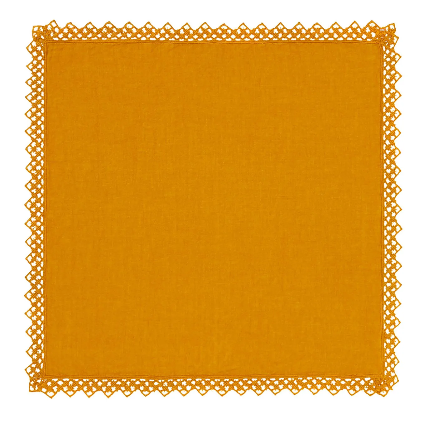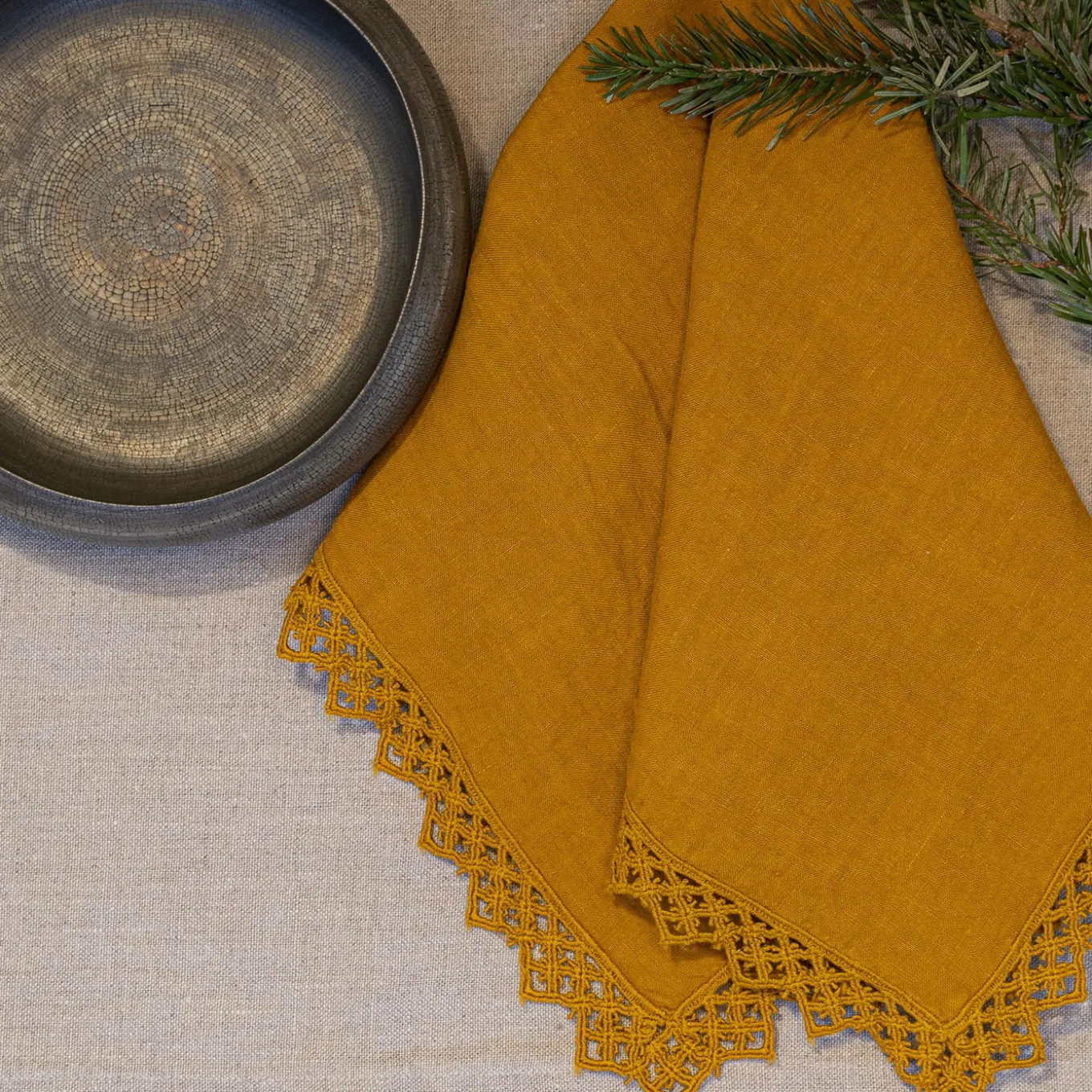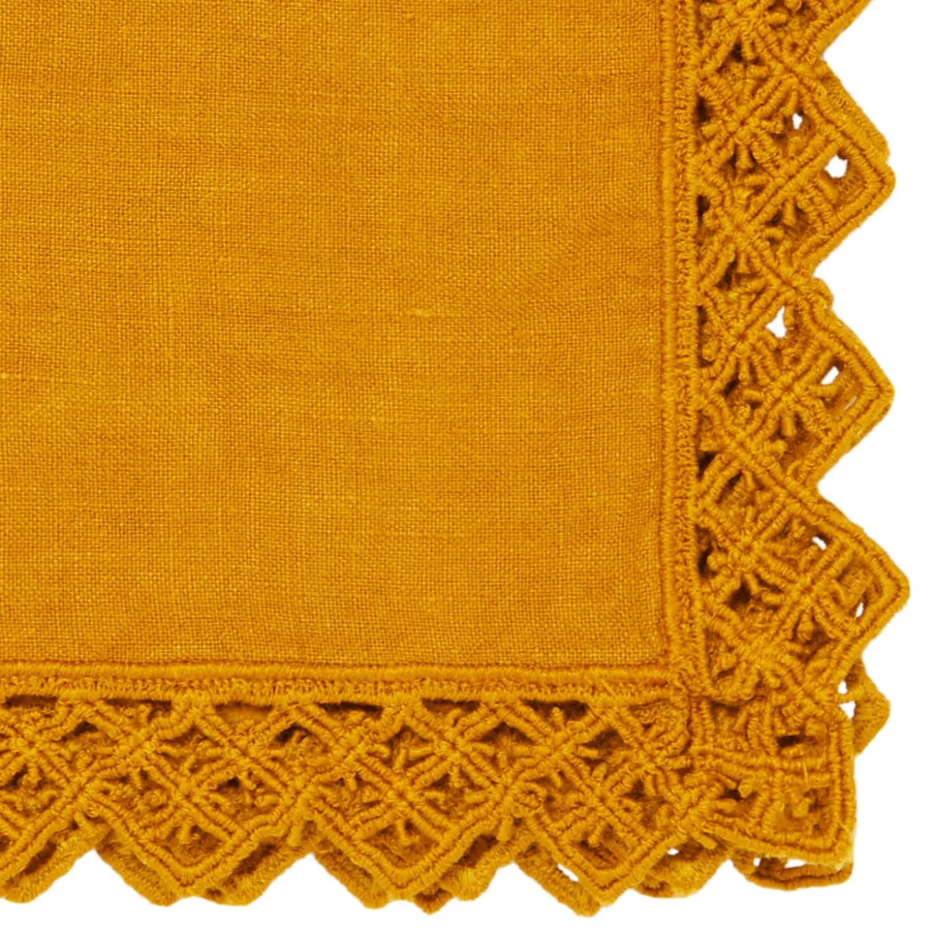 These linen napkins with macramé details offer a modern take on an exquisite traditional craft. Available in a wide range of colors. Perfect for adding elegance and sophistication to every table.