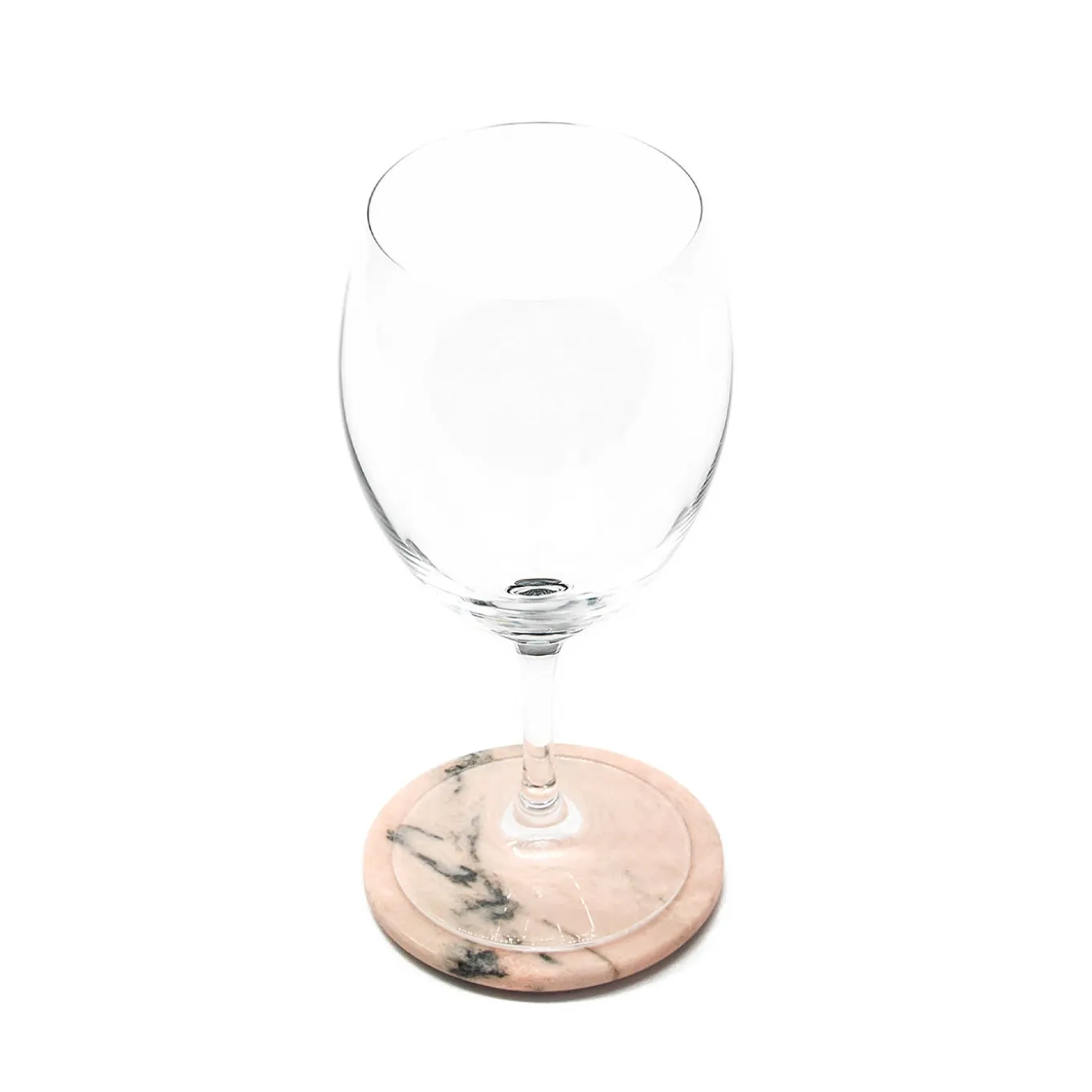 Feminine and classy, this set of four round coasters fashioned of prized pink Portogallo marble makes for a glamorous backdrop for water and wine glasses, alike. A layer of cork is applied to the bottom for exceptional grip. Seductive veins emerge from the pale pink background, implying the uniqueness of each piece crafted from natural stone.