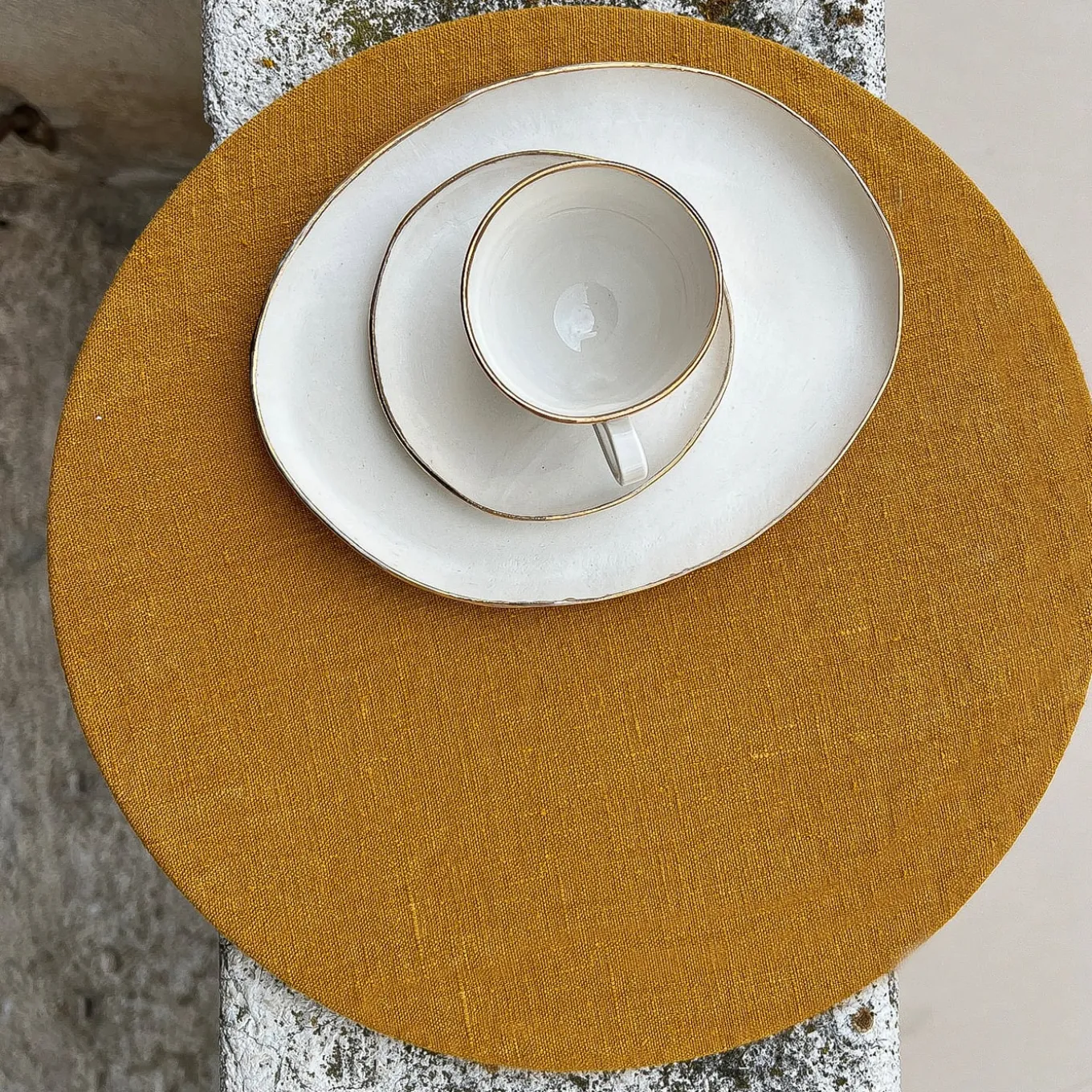 Be the first to review “Set Of 4 Round Linen Placemat With Wooden Support” Cancel reply