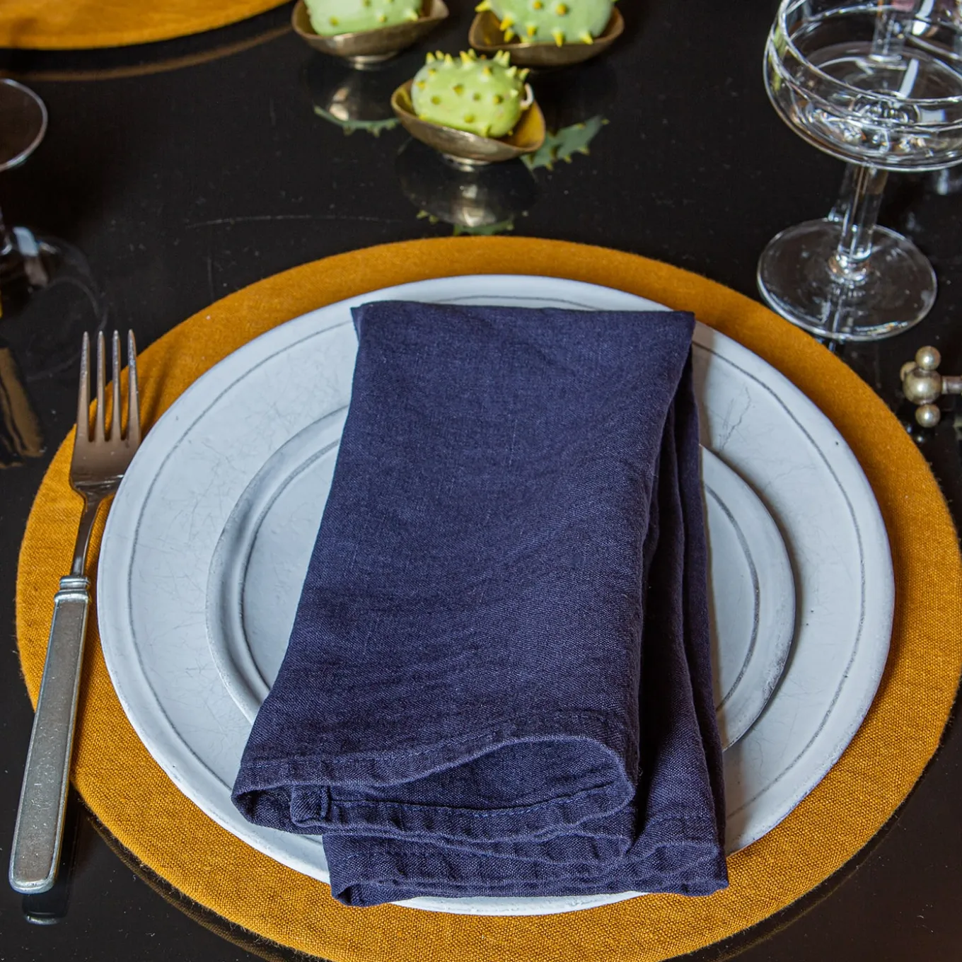 These round linen underplates with removable covers offer a beautiful new way to play with color on any table. To match our wooden holders, included in the set. Available in a wide range of colors, ideal for every occasion and season. 39 cm diameter.