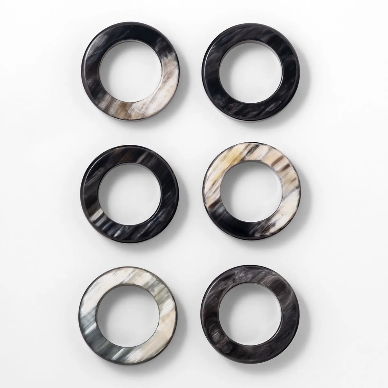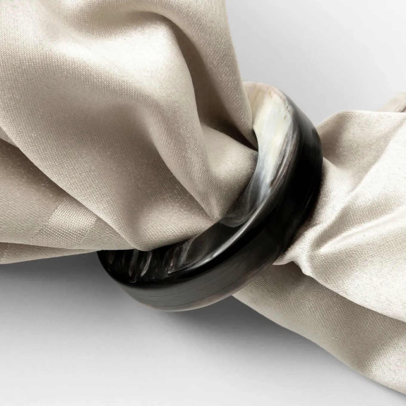 Meticulously handcrafted by master artisans, the sublime black horn is shaped into dainty rings that elevate the mesmerizing allure of the natural colors and striations. Finished with wax, the set is delivered in a handmade box with a padded, satin-lined interior, perfect for safekeeping. Due to the nature of the product material, each ring may be slightly different in coloring as visible in the images. Part of the Weaving Collection.