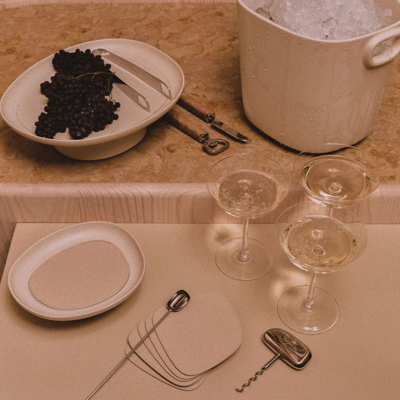 Elevate the art of entertaining with the Maris beige leather coasters, a set designed to bring a touch of luxury to any tabletop. Inspired by coastal themes, these exquisite coasters embody timeless elegance through their meticulously crafted leather construction. The collection harmonizes the sun-soaked aesthetics of California with refined craftsmanship, creating versatile pieces that suit a variety of settings. The neutral color palette not only enhances the aesthetic appeal but also allows for seamless integration into various décor styles. Each coaster’s organic shapes, reminiscent of smooth pebbles shaped by gentle waves, invite a sense of calm and sophistication. With a set of six coasters, this collection ensures that every occasion can be celebrated in style, providing both practical functionality and a luxurious design statement. Perfectly suited for discerning tastes, the Maris coasters stand as a universal language of design, transcending borders and enhancing the atmosphere of any gathering.