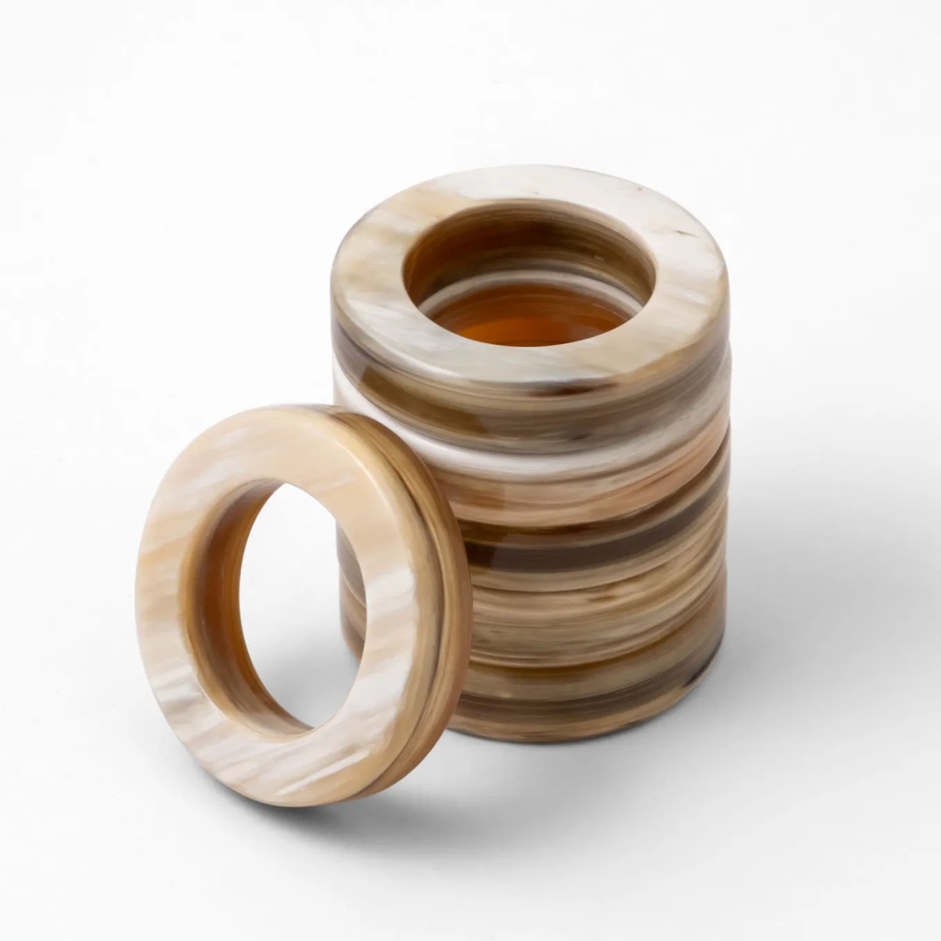 Superbly handcrafted by master artisans, the prized white horn is shaped into dainty rings that accentuate the captivating natural colors and striations. Finished with wax, the set is delivered in a handmade box with a padded, satin-lined interior, perfect for safekeeping. Due to the nature of the product material, each ring may be slightly different in coloring as visible in the images. Part of the Weaving Collection.