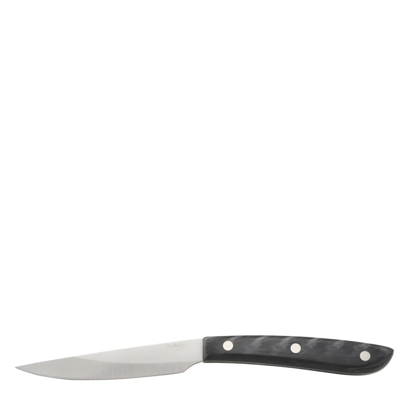 This set of steak knives will be a great addition to any kitchen and dining room and can also be a wonderful housewarming gift. The fine craftsmanship of their blades will guarantee an excellent performance, while the dark resin handles, straight and positioned at an angle with the straight blades, are easy to maneuver and facilitate their use in the kitchen and at the table.