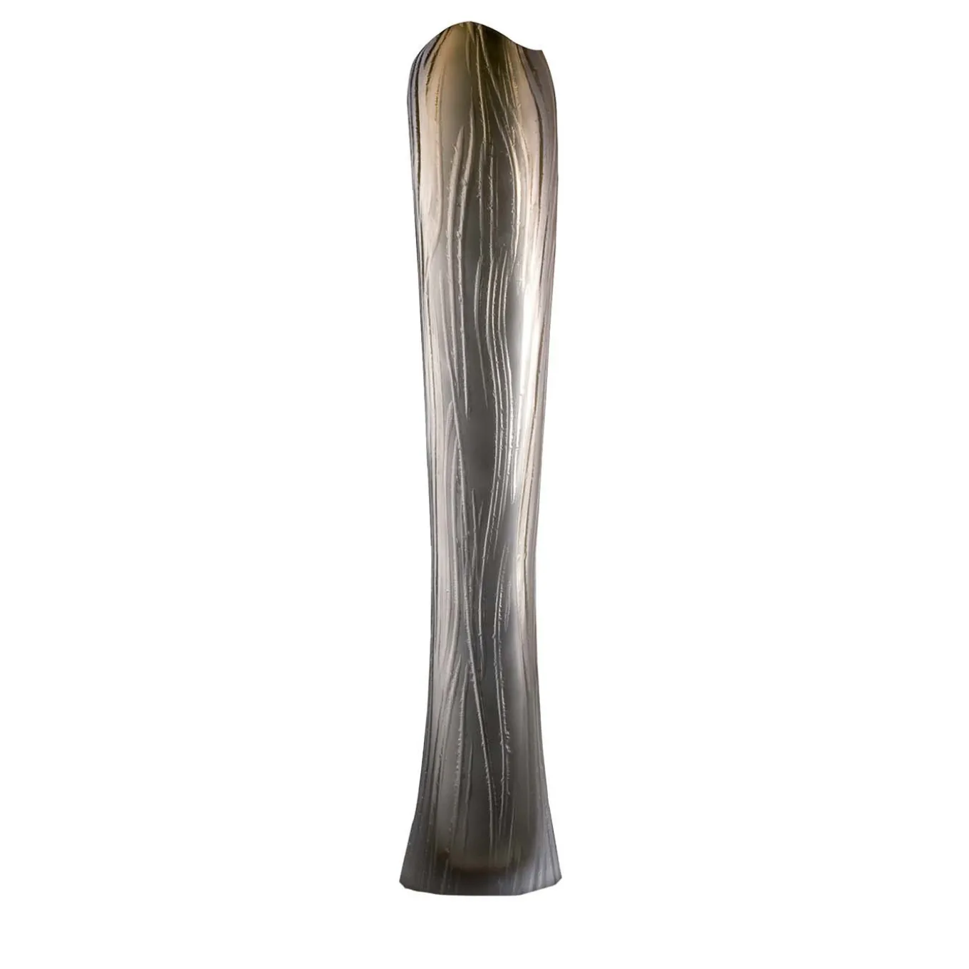 Part of the Sfumati collection of Murano glass vases, this piece was superbly crafted by master glassmakers decorated with abstract engravings carried out on a lathe. The wavy lines along the uniquely shaped body enhance the gradient hues of the topaz glass that softly fade from the undulated mouth to the slightly flared base. Timeless and elegant, this vase can be given as a gift to a loved one or included in a personal collection.