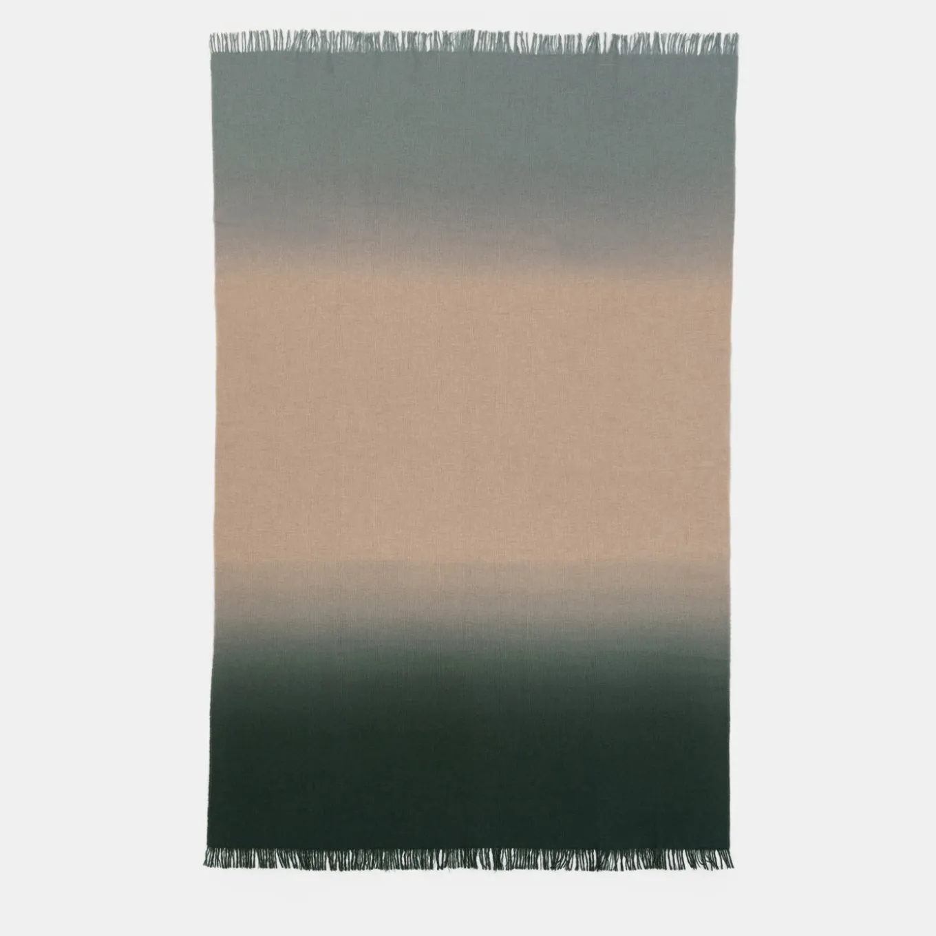 An enthralling shaded effect ranging from deep green to sage green through beige immediately reveals this exquisite blanket’s contemporary spirit. Woven from fine Merino wool for ensuring extra warmth during cozy relaxation moments, it flaunts a fringed profile seemingly whispering to its fancy allure. Another color option can be discovered in the Artemest catalog.