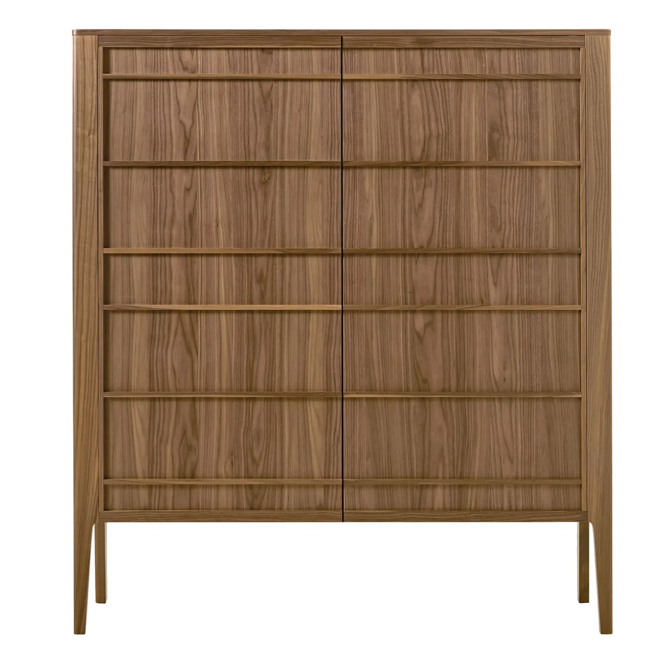 This elegant cabinet features Havana finish wooden structure with 2 wooden doors and 3 glass shelves