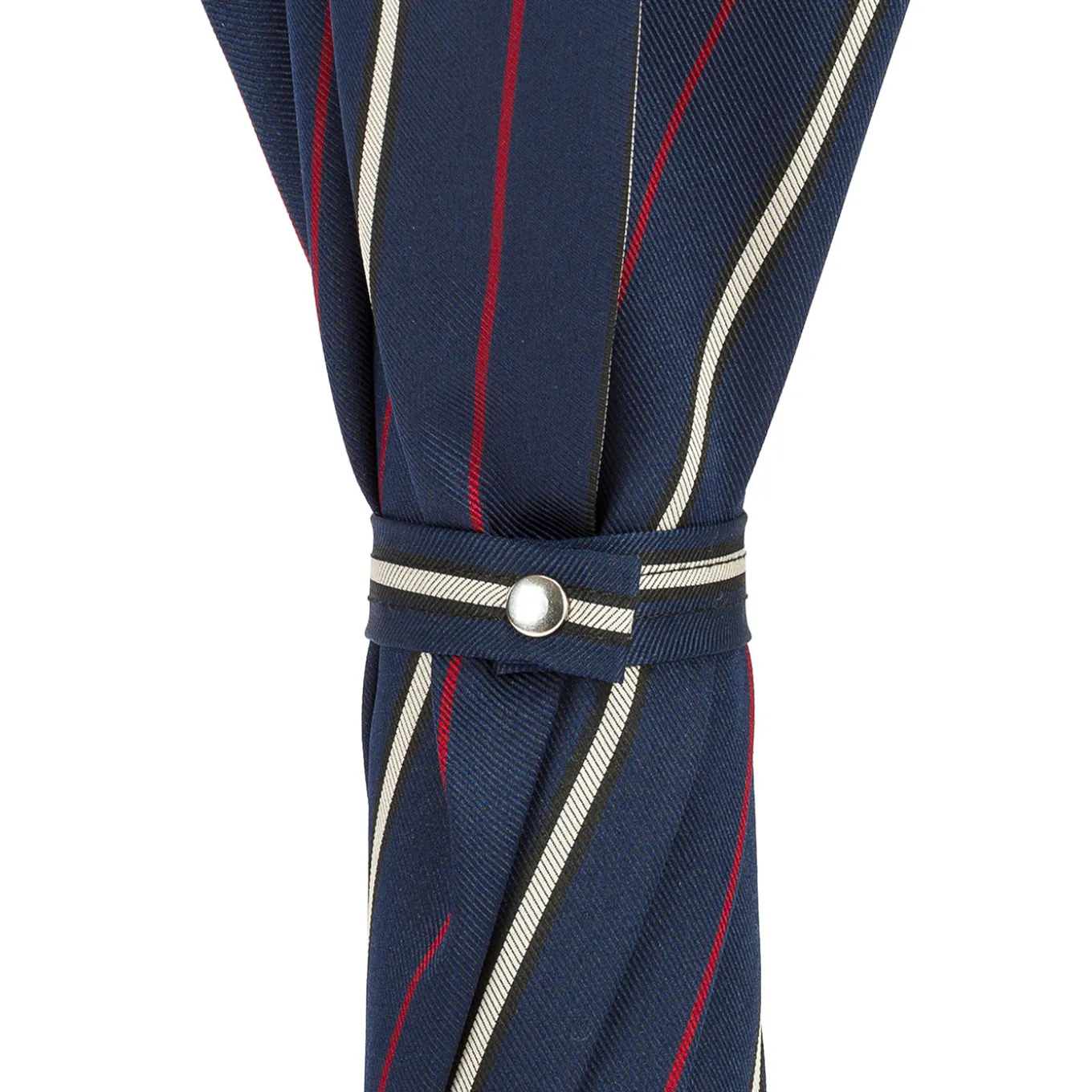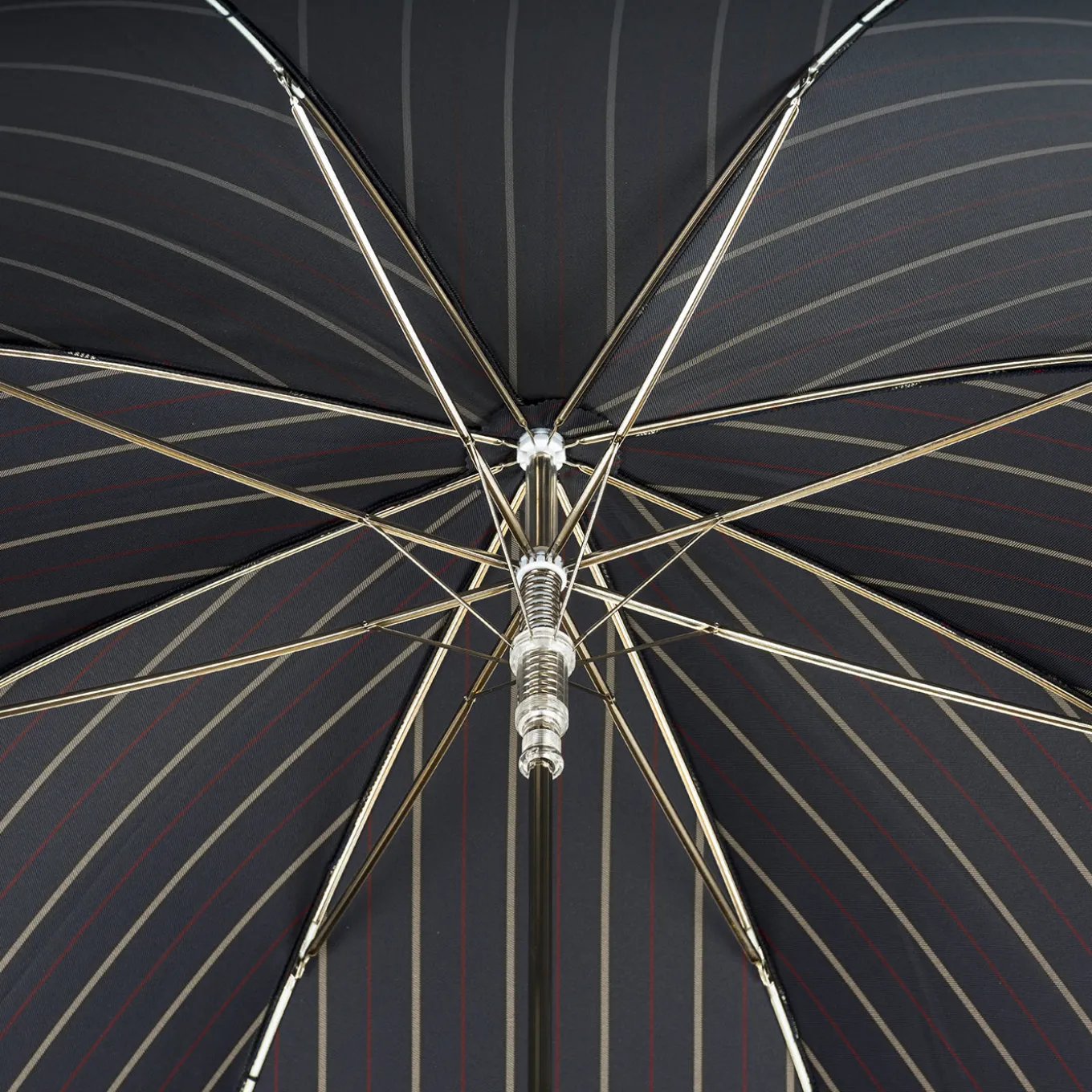Automatic opening umbrella featuring a silver-plated resin handle shaped like a monkey head, combined with a striped fabric canopy. Measuring 95cm in length with a 110cm diameter, it offers medium coverage. The design balances elegant detailing with practical functionality, suitable for everyday use and adding a distinctive touch to rainy day attire.