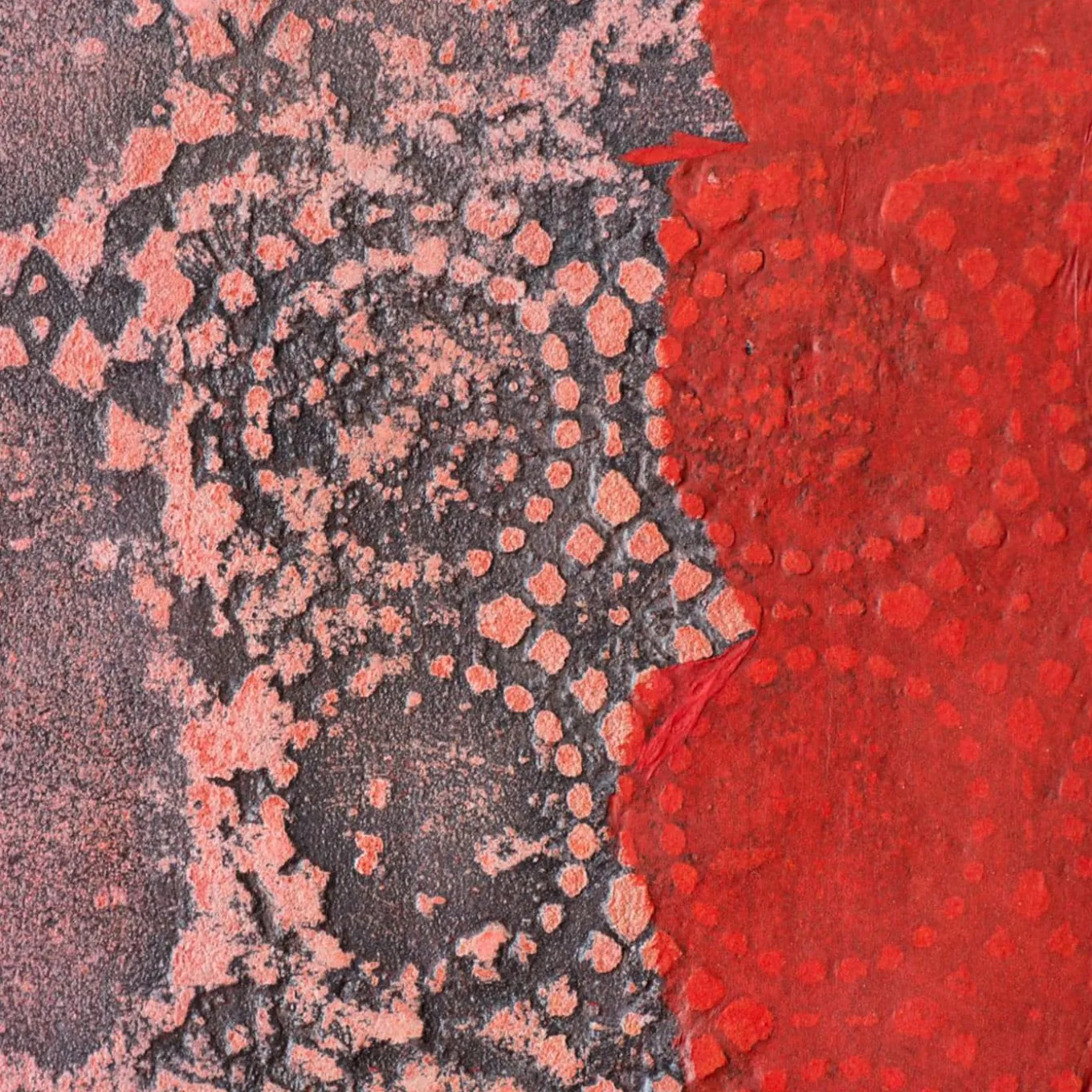 This superb piece featuring a wooden core decorated with mixed-media techniques including pigments, micro cement, and Japanese paper is a singular artwork reflecting artist Alice Corbetta’s exploration of the themes of absence and the passage of time. The conflicting embossed patterns remind of fossils, while the colorful scratched textures hint at corroded buildings’ facades. Delivered with a certificate of authenticity.