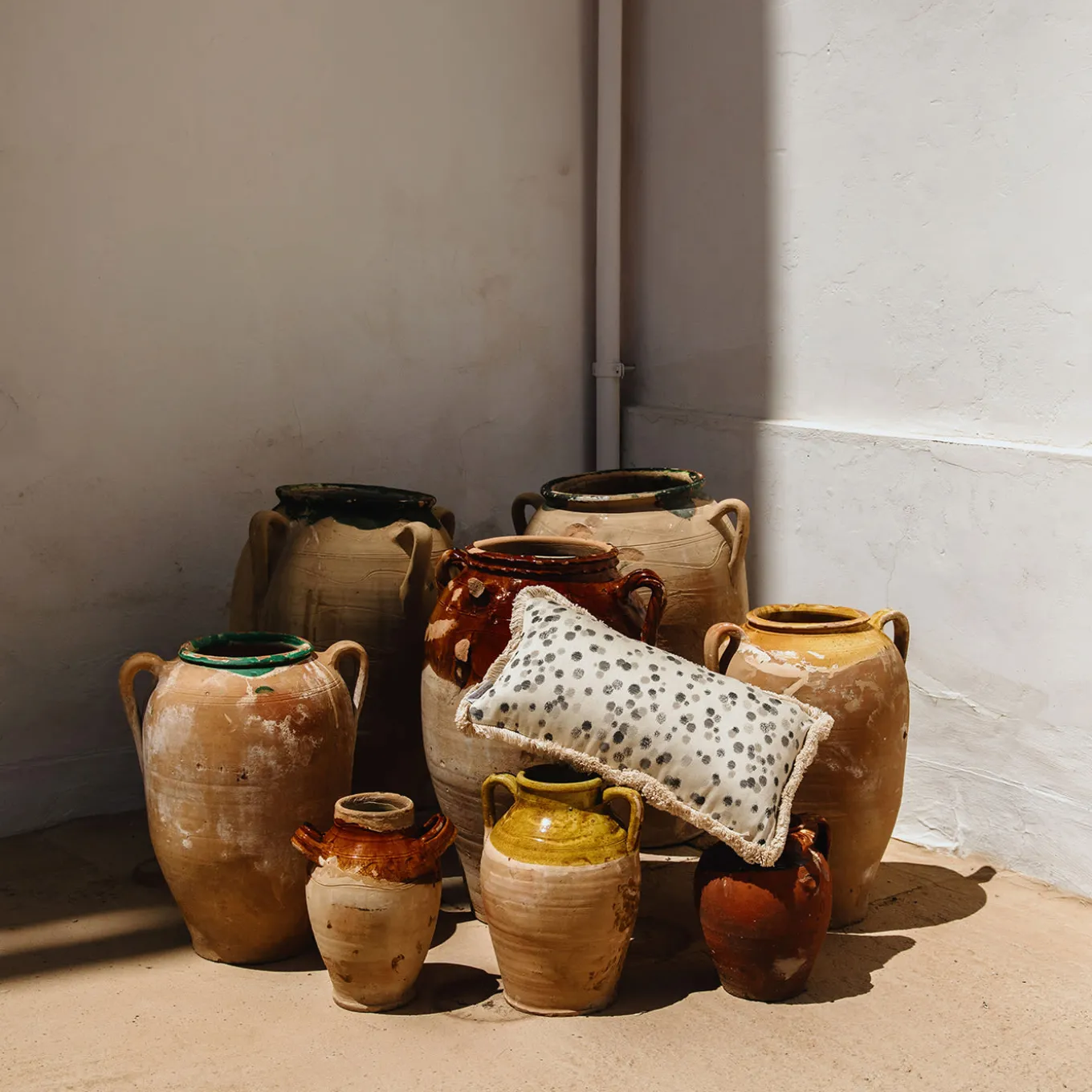 Small luxury decorative cushion in Black and White 30x50cm in 100% cotton jacquard fabric with frayed edge. Its exclusive textile pattern is reminiscent of the traditional Apulian macchiato technique, emblematic of the brand as a celebration of the joyful spontaneity of nature. This refined cushion is made entirely by hand in Italy and woven on the ancient looms of a historic Apulian weaving mill with respect for history, nature, and people.