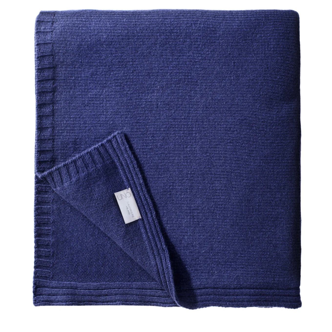 Made from pure cashmere in a flattering shade of midnight-blue, this elegant throw will add visual depth and extra comfort to any light-toned sofa. It boasts an alluring ribbed design framing the edge which functions as a delicate yet intriguing frame for the extensive flat knitting. Feeling utterly soft and warm to the touch, it is ideally worn as a shawl for an exceptional cozy feeling.