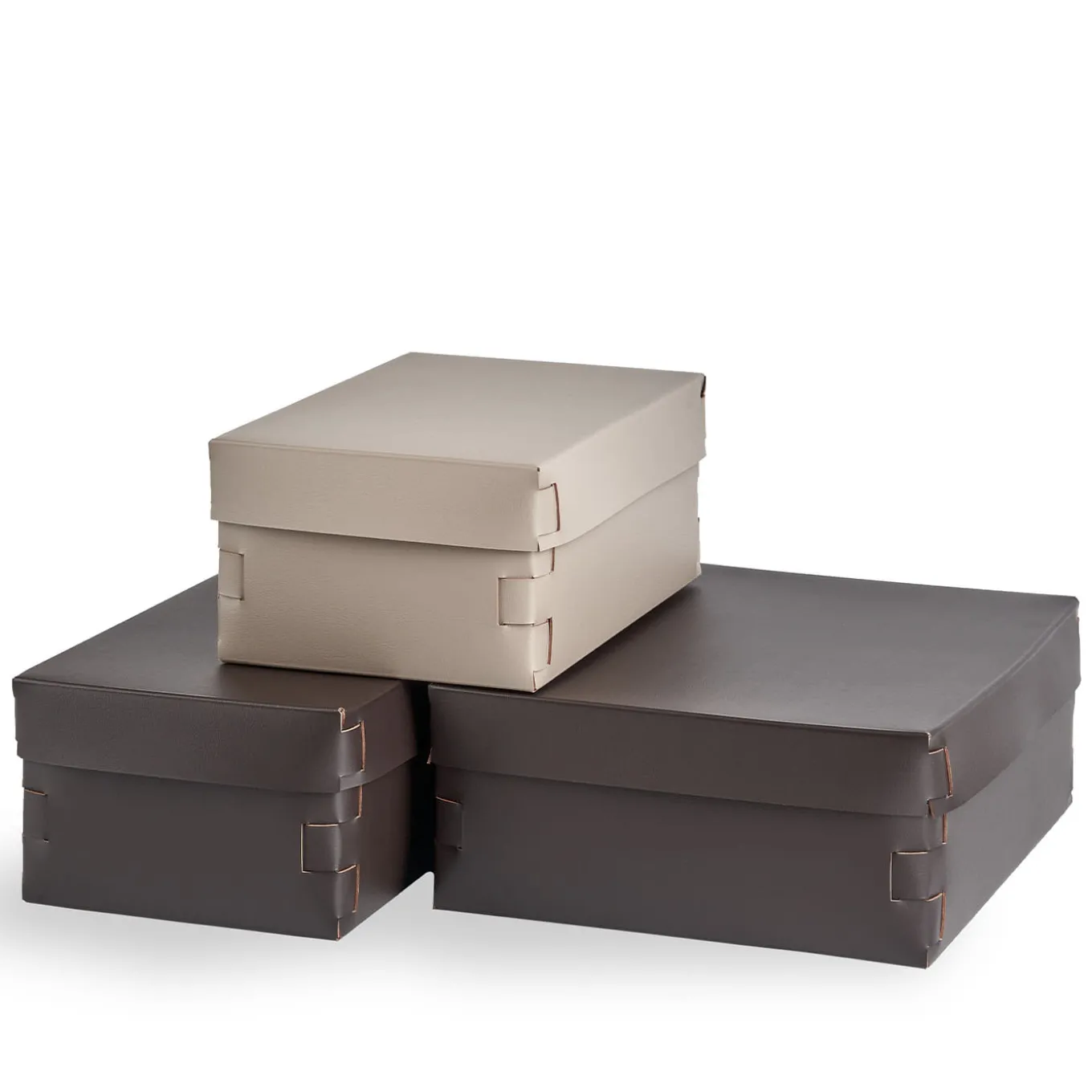 Elegant cappuccino box, specifically designed by Ekaterina Borovkova to fit seamlessly into standard-size closets. These versatile storage solutions are perfect for organizing a variety of items, including footwear, clothing, sports equipment, and more. It is available in customizable sizes, please contact the concierge for more information.