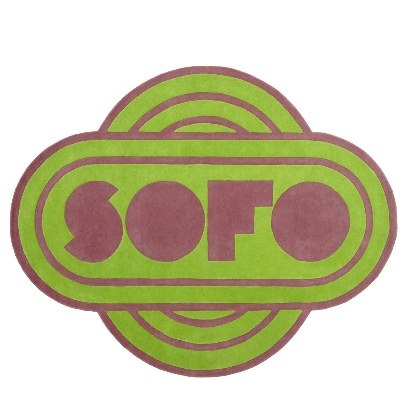 Dedicated to the homonymous hyperpop modular system by Superstudio, the Sofo rug is the result of research in the archives of Centro Studi Poltronova. Its shape is none other than the marking, designed in the 1960s by the same members of Superstudio, which characterized the product’s shipping packages. A composition of concentric circles with, in the central part, typographic shapes of a geometric nature declaring the name of the product.