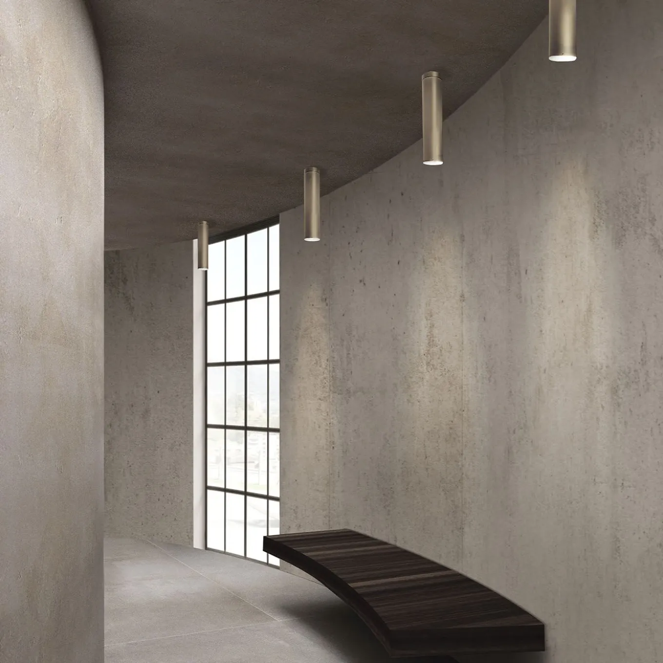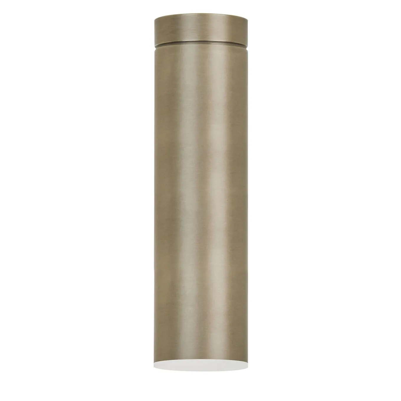 Displayed solo (as suggested by its name) or in pairs for a spectacular and well-diffused illumination of contemporary decors, this ceiling lamp is as minimalist in its volume as it is intriguing in its look. The cylindrical metal body flaunts here a luminous brushed and light-toned bronze finish, but multiple finishing options can be explored in the Artemest catalog.