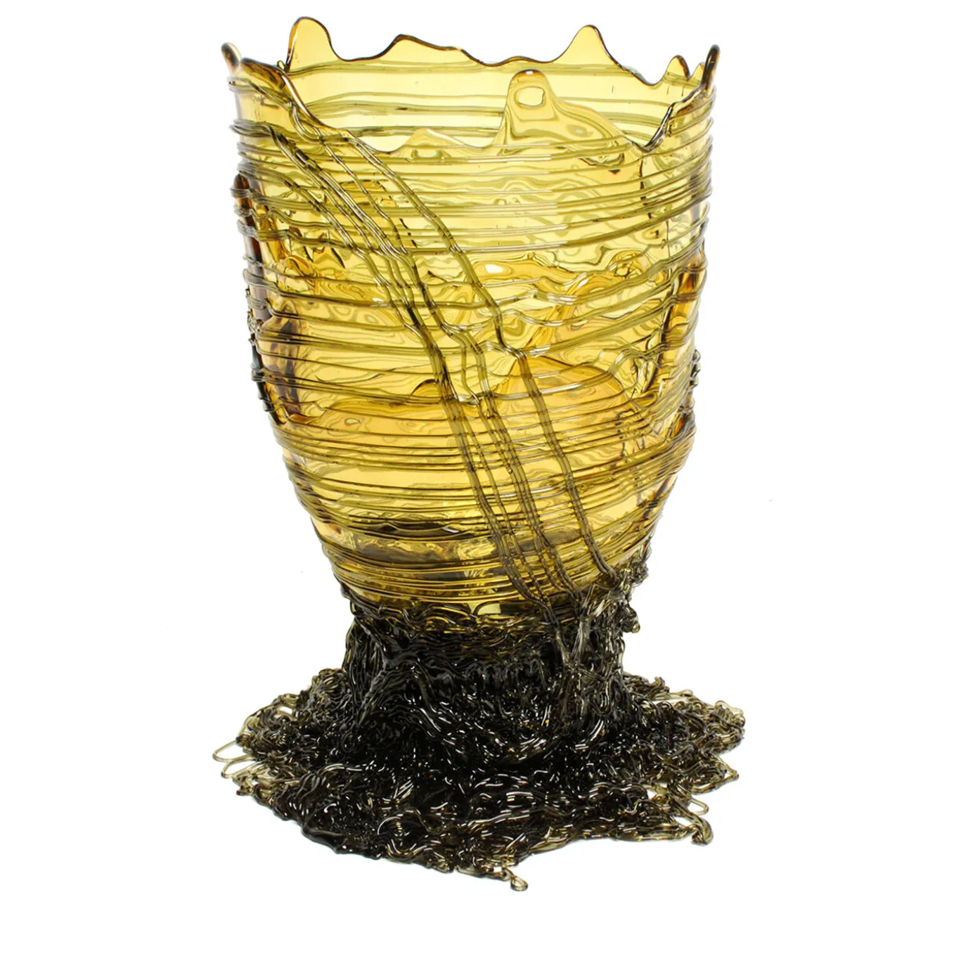 Stunningly shimmering in its vivacious yellow color inspired by the natural shades of homemade pasta, this extraordinary vase is a tribute to Italian cuisine. Deliciously mouth-watering, it is entirely crafted of resin shaped as entangled spaghetti. This iconic design belongs to the Fish Design Collection by Gaetano Pesce.