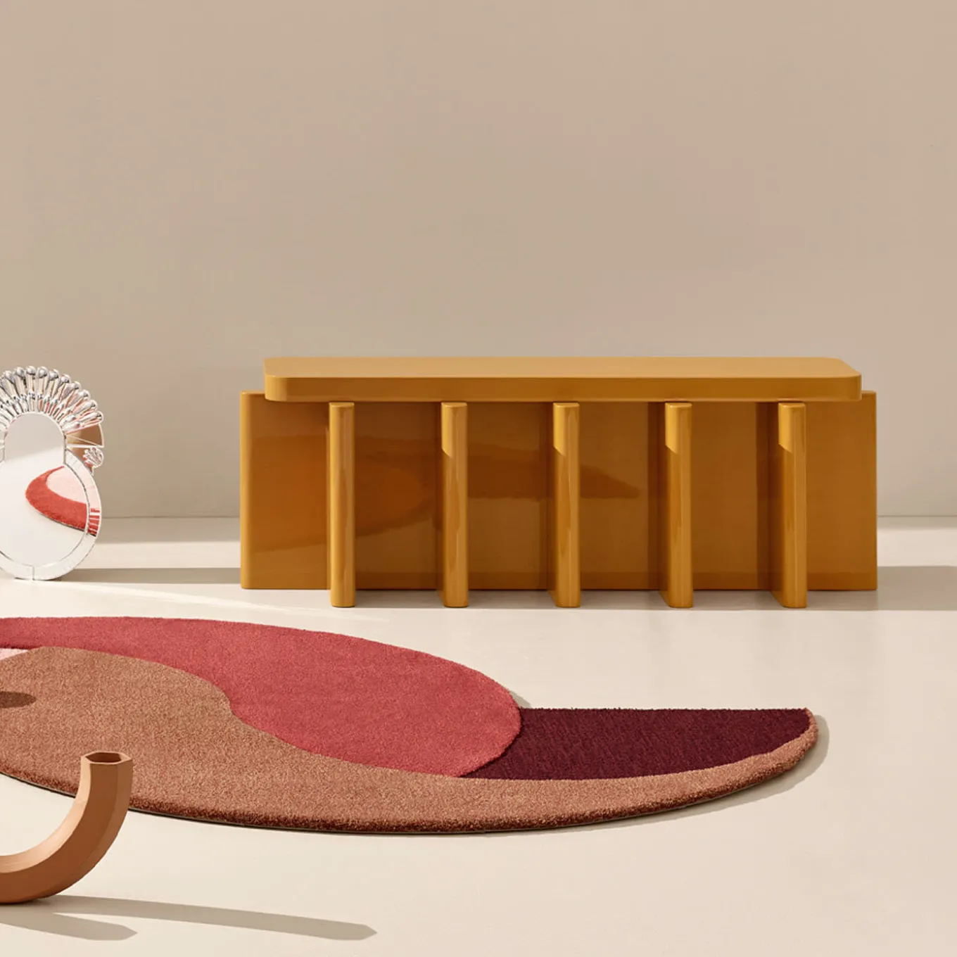 Essential and graphic, the table has a dense skeletal base made up of a repeated geometrical element that supports a smaller horizontal plane. The notion of stacked objects makes it a sort of altar with a totemic and primitive depiction. Design by Cara/Davide for Portego.