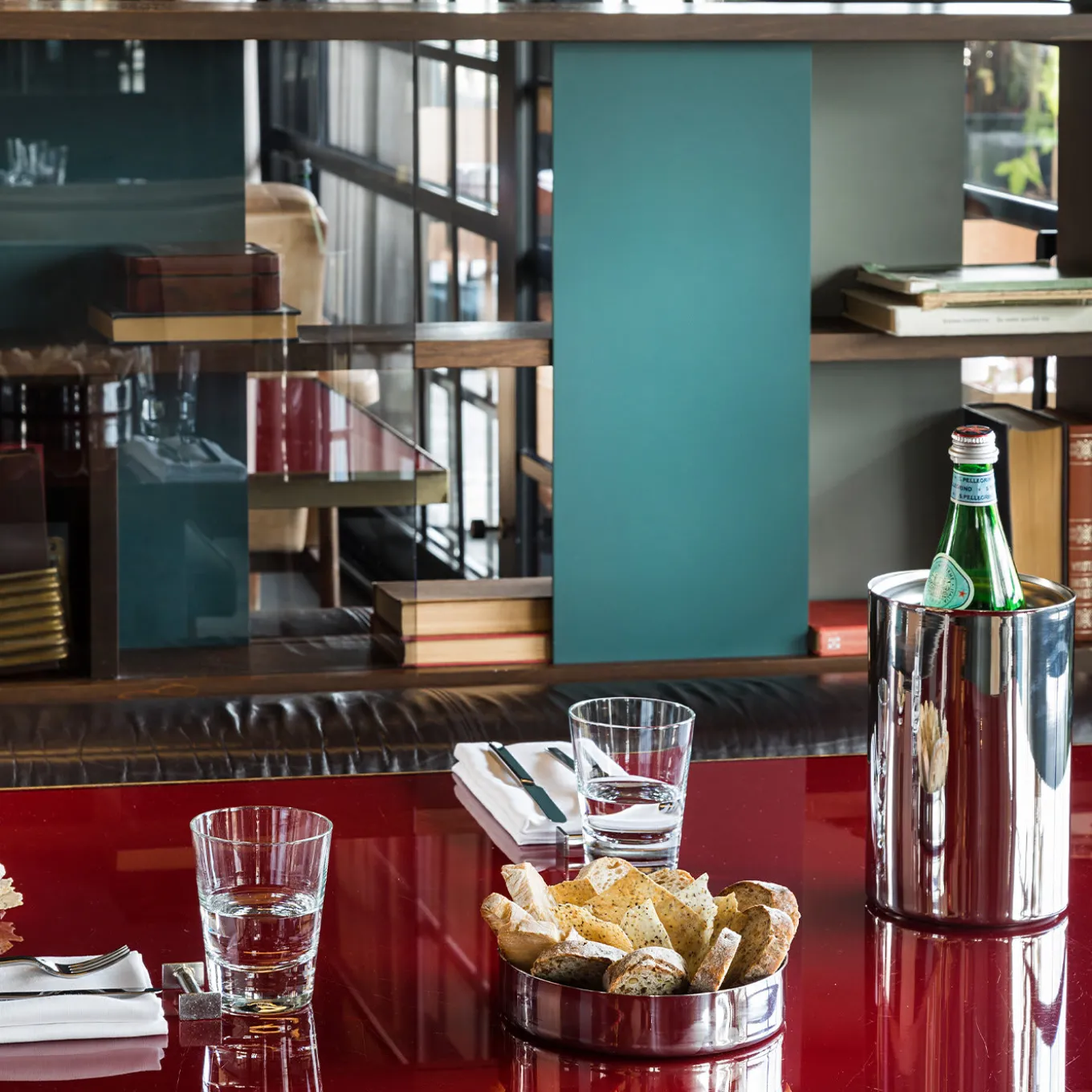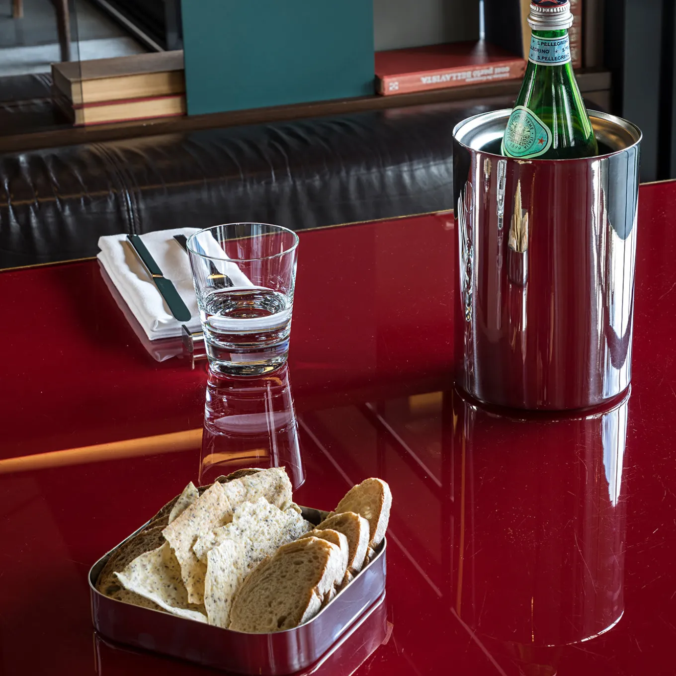 An insulated stainless steel gallette for one bottle. This item can be customized with engravings. Other available colors include gold, black gold, champagne, bronze, rainbow. Please ask Concierge for details.