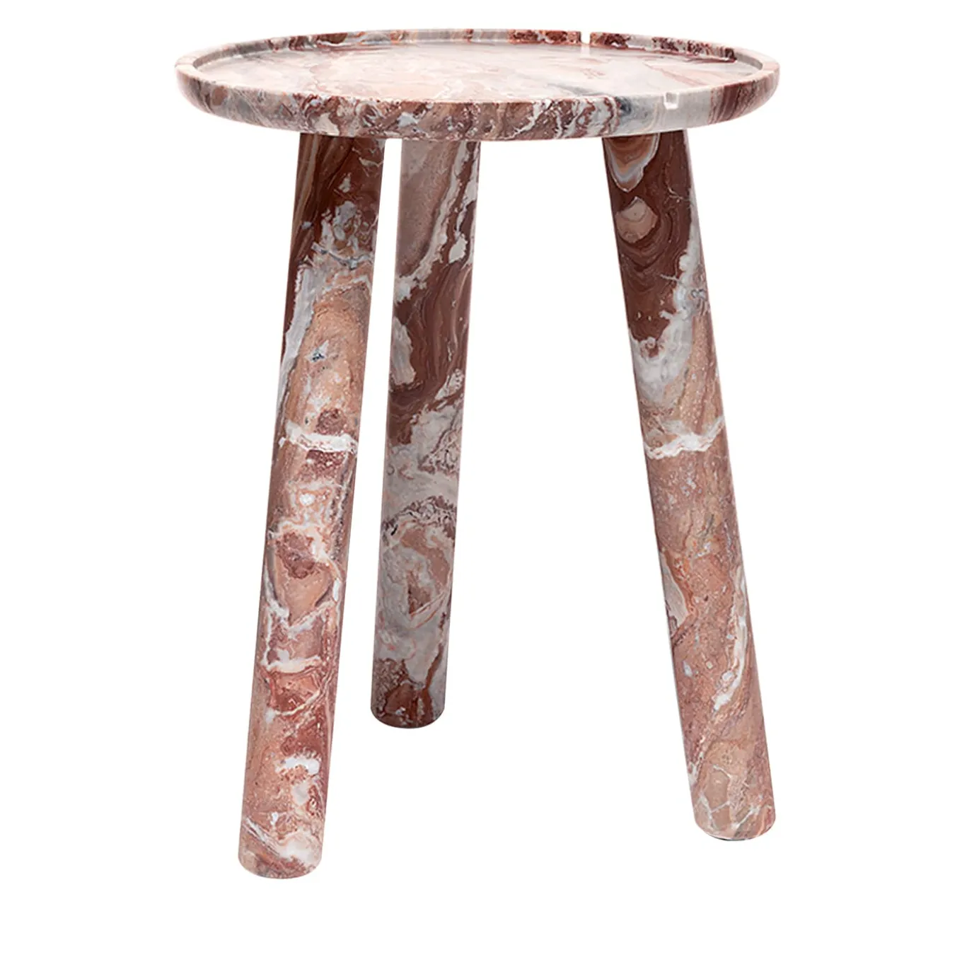 This sleek and singular design by Ludovica and Roberto Palomba is magnificently handcrafted of precious Arabescato Orobico red marble, a marble quarried in northern Italy that showcases shades of bright red with white, burgundy, and grey veins. Entirely customizable, it features a tripod structure supporting a round tray-like top. A protective cover is recommended for outdoor use. If the products are placed completely outside, nightcovers that can be purchased at an extra price are recommended. Please contact the Concierge for further information and options.