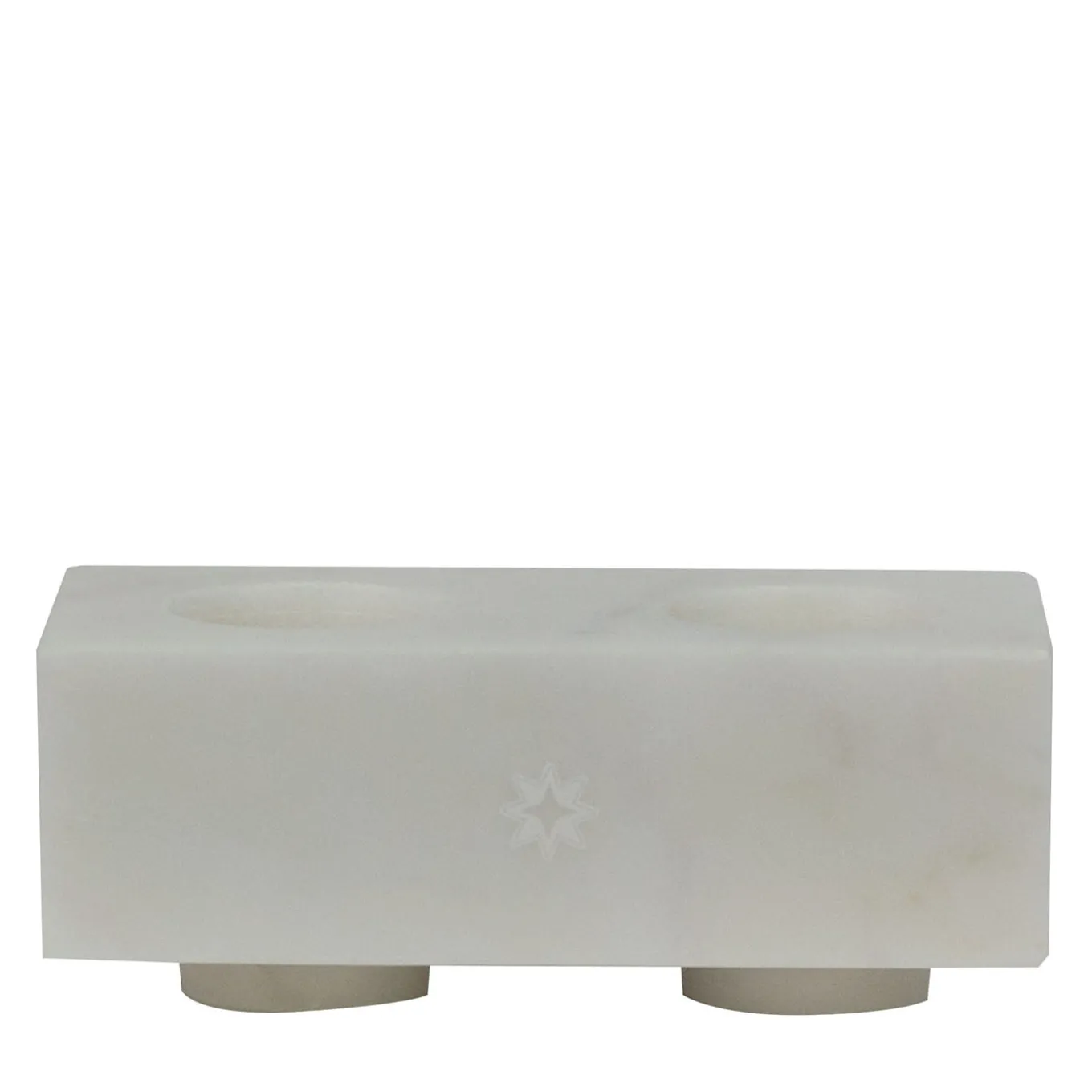 Satin marble double squared holder designed for both candles and tealights, featuring a sleek, minimalist silhouette. Versatile and multifunctional, this piece can be combined with other components from the collection available in the Artemest catalogue, adding a subtle yet elegant touch to any interior.