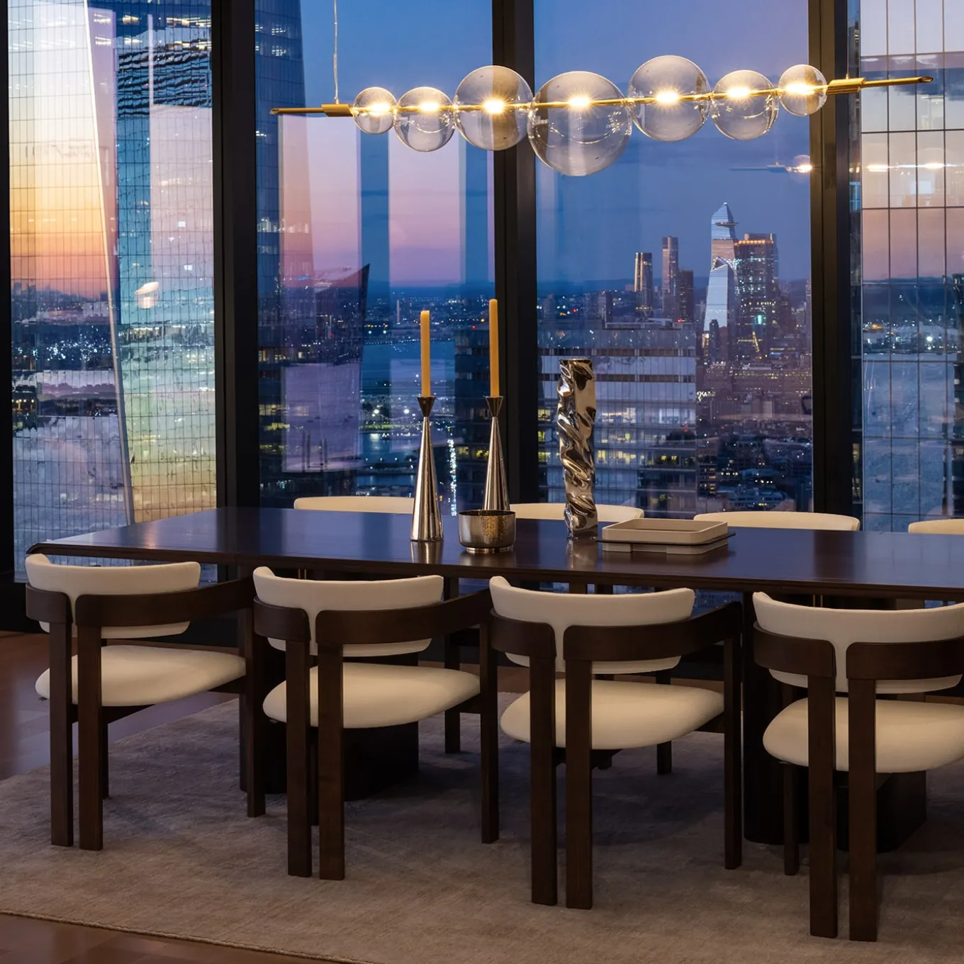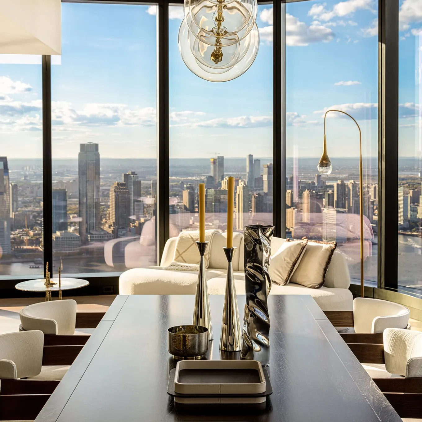 Used to adorn a modern dinner table or an entryway console, this striking candlestick will bring contemporary charm in any interior. The sleek and elegant silhouette evokes an irregular hourglass, with the two cone-shaped elements connected at the top, deftly hand forged of brass and finished with a polished nickel plating. Available also in a smaller size, the pair can be displayed together for an eye-catching high-low look. This piece is currently on show and immediately available at Artemest Galleria New York.