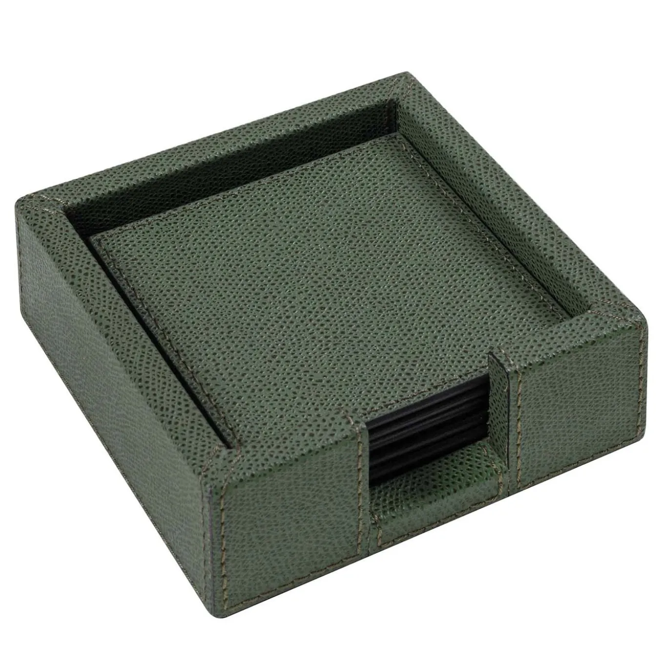 Leather-covered wood structure able to host 6 Tao coasters (TP070). Semi-flexible and waterproof.