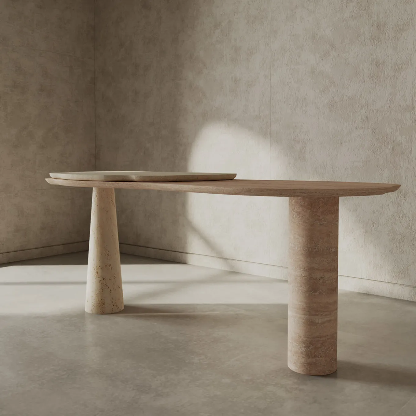 The Taormina Console is a stunning tribute to the timeless beauty of the renowned Sicilian city, where history, art, and nature converge in perfect harmony. Crafted from exquisite travertine, this console showcases meticulously polished and sandblasted surfaces, embodying the strength and elegance of natural stone. Each piece features unique veining, ensuring that no two consoles are alike, adding an exclusive touch to any space. With its essential lines and robust structure, the console evokes the grandeur of classic Taormina architecture, while its refined texture mirrors the warmth and materiality of the Mediterranean cliffs. This sophisticated furniture piece is perfect for enhancing entrances, living areas, and exclusive environments with a discreet yet contemporary touch of luxury.