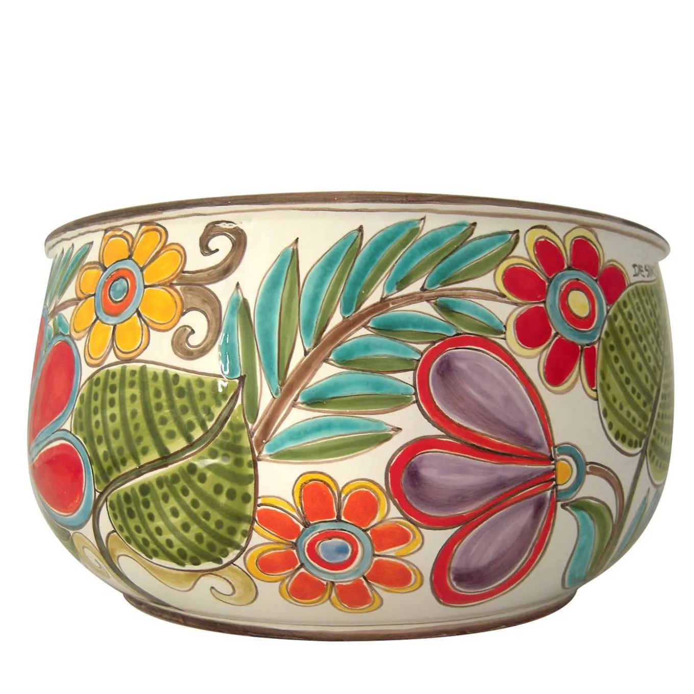 A short ceramic vase, crafted and painted by hand by De Simone artists. From the house’s DS Collection, the vase features a traditional floral design in vibrant colors. A sweet centerpiece for dining tables on a summer’s day, the vase is signed and sold with a certificate of authenticity, making it a great gift.